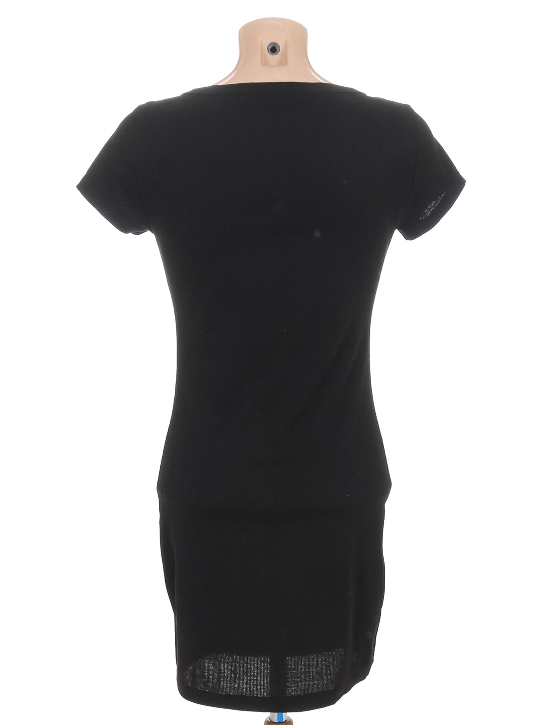 Маркировка на изделии отсутствует. Размер указан на основании замеров40-42. Есть катышки, в области подмышки есть мелкие дырочки. Немного потускнел цвет ткани.