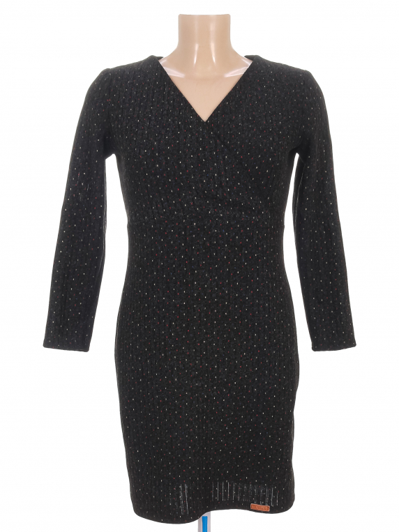 Есть мелкие катышки. Потрескалась нашивка снизу. Распускается строчка на манжете.