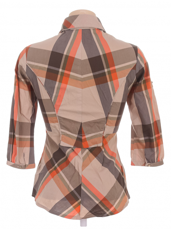 Маркировка на изделии отсутствует. Размер указан на основании замеров 38-40. На спине распустилась строчка по шву, отрывается часть материала.
