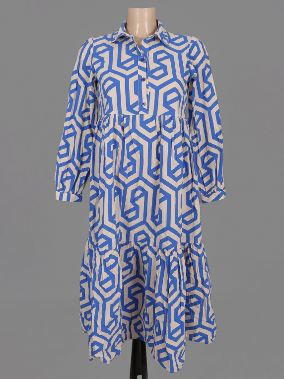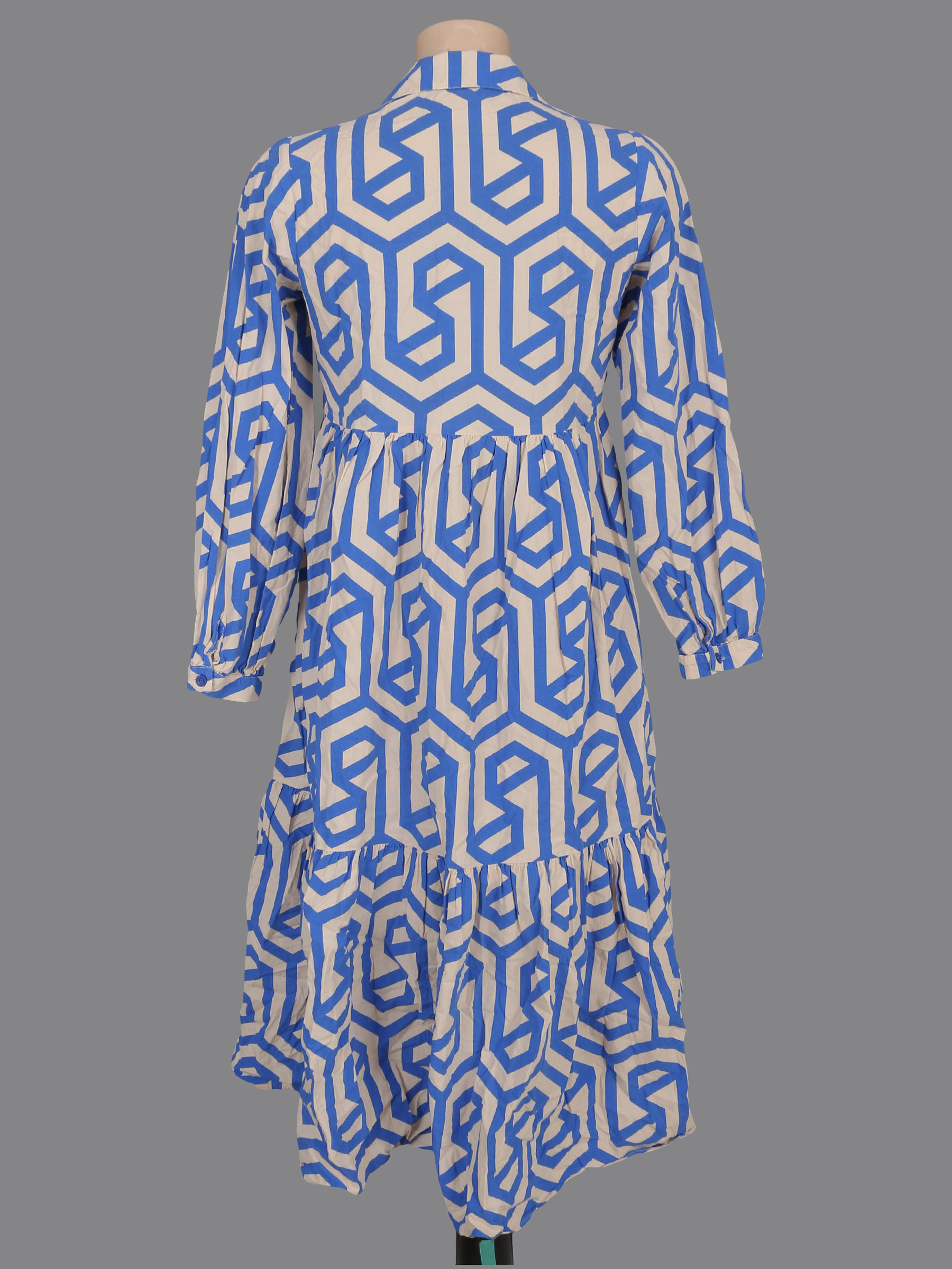 Маркировка на изделии отсутствует. Размер указан на основании замеров 44-46. Синий-бежевый. Немного потускнел цвет ткани.