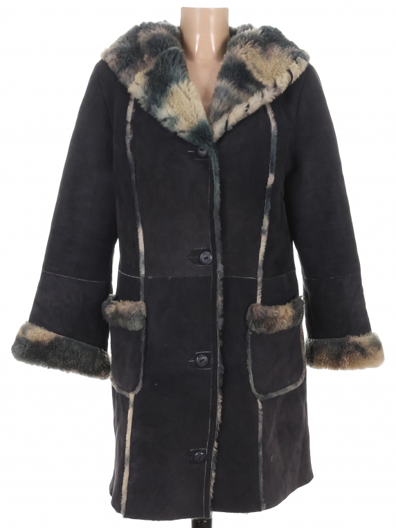 Маркировка на изделии отсутствует. Размер указан на основании замеров. Мех скатался. Есть потертости и катышки.