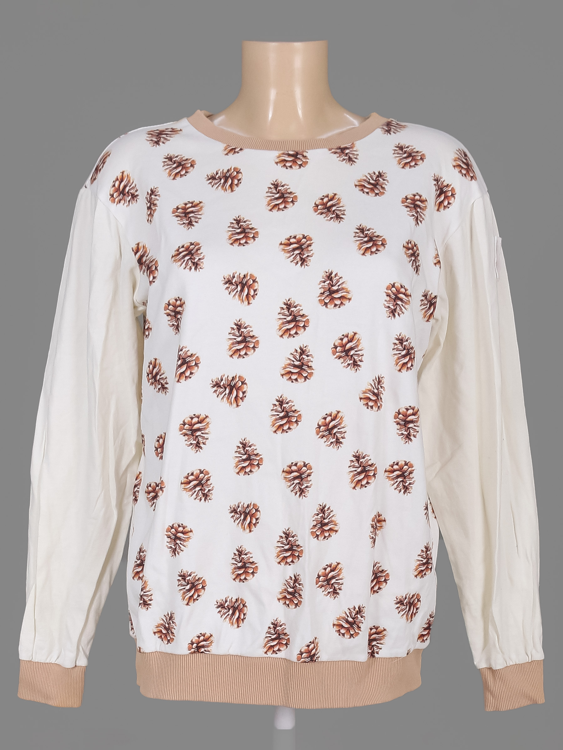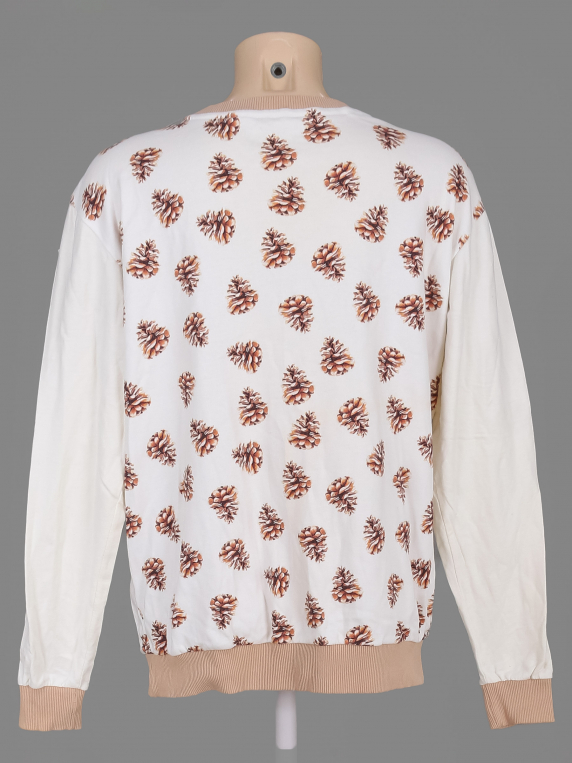 Маркировка на изделии отсутствует. Размер указан на основании замеров 48-50. Замер рукава указан от горловины. Есть загрязнения, пятнышки, разводы, около швов на манжетах мелкие дырочки. Мелки катышки местами.