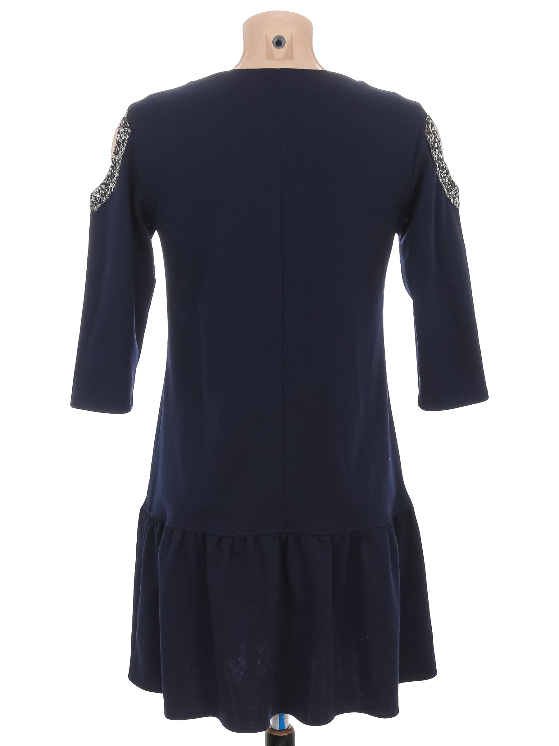Маркировка на изделии отсутствует. Размер указан на основании замеров 42-44. Есть немного катышек по швам, спереди лоснящиеся полосы.