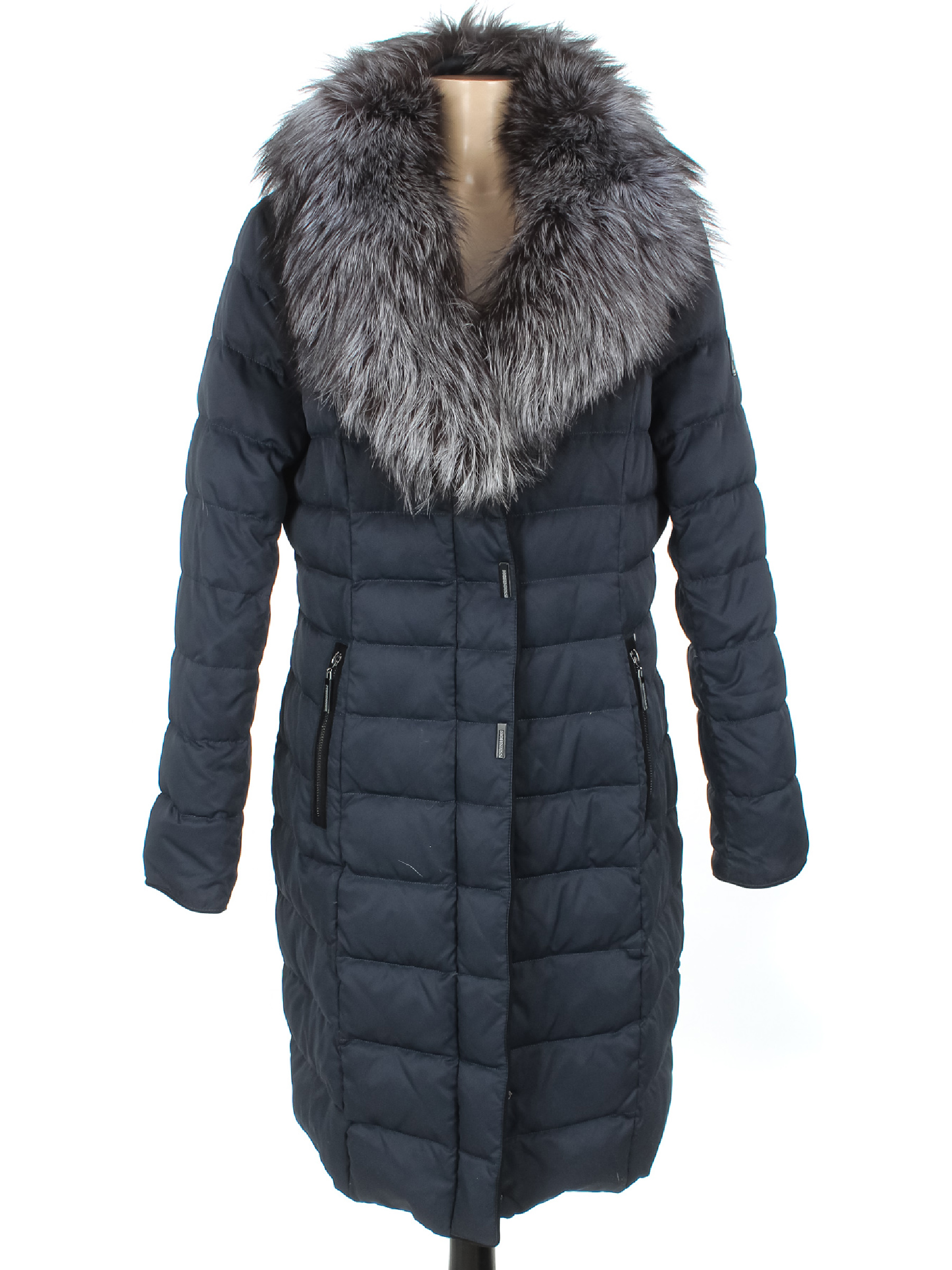 Маркировка RUS 48. Есть загрязнения, ткань местами лоснится, нет пуллера на бегунке, сбился/слежался наполнитель.