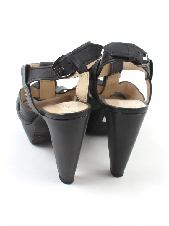 Маркировка на изделии 38. Размер указан на основании замеров. На изделии есть знак "кожа". Есть небольшие загрязнения, царапинки, повреждения материала, немного сбиты набойки.