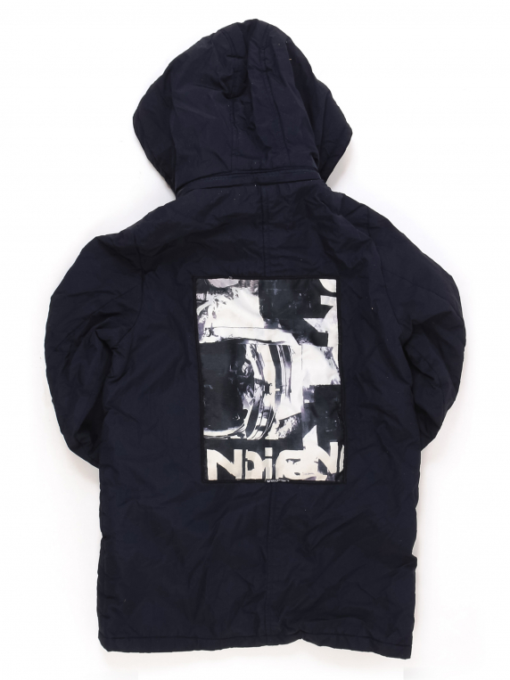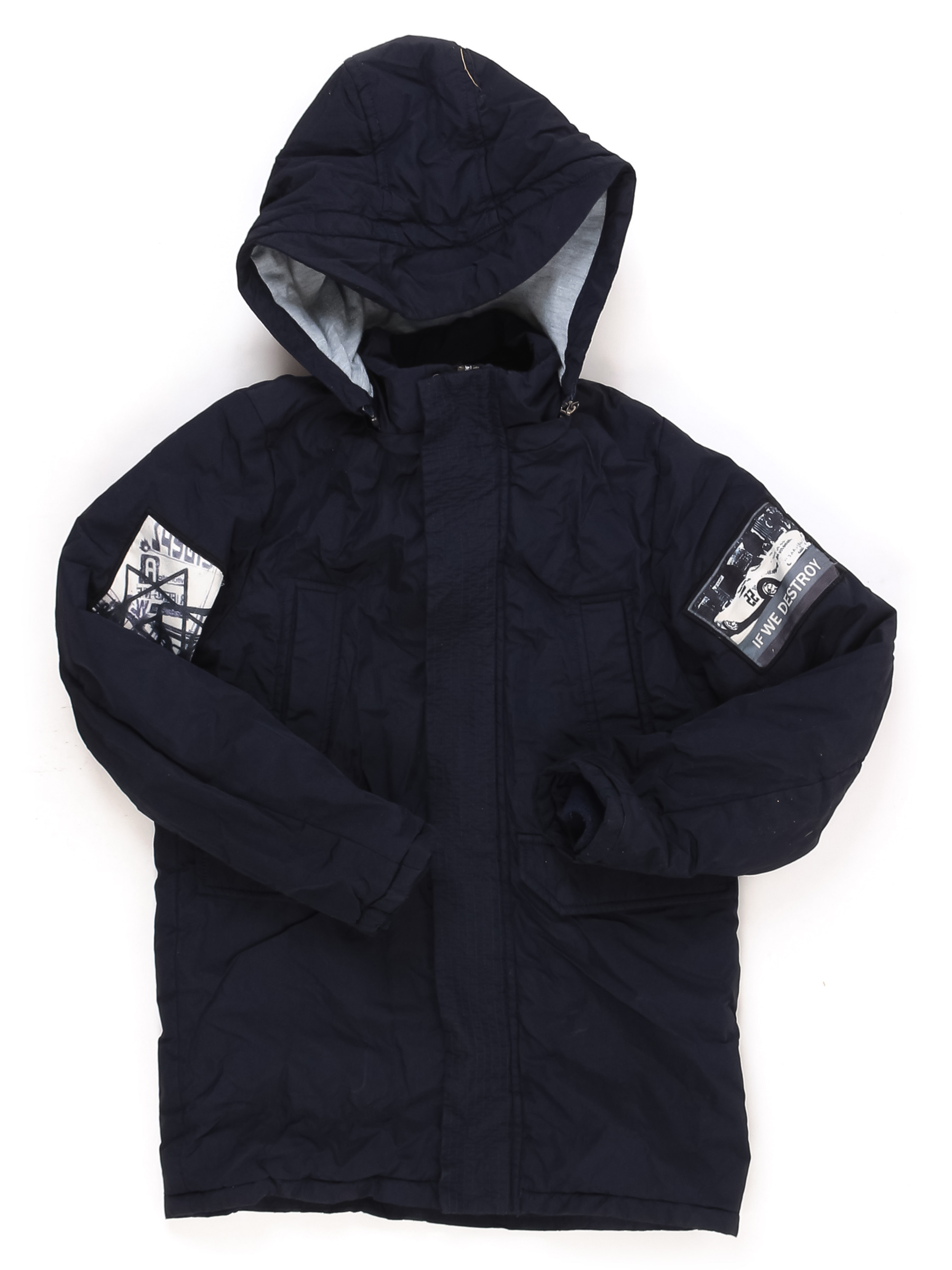 На подкладе дырочки по шву, катышки местами. Небольшие загрязнения, стирается краска на бегунке. Ткань потускнела, местами лоснится.