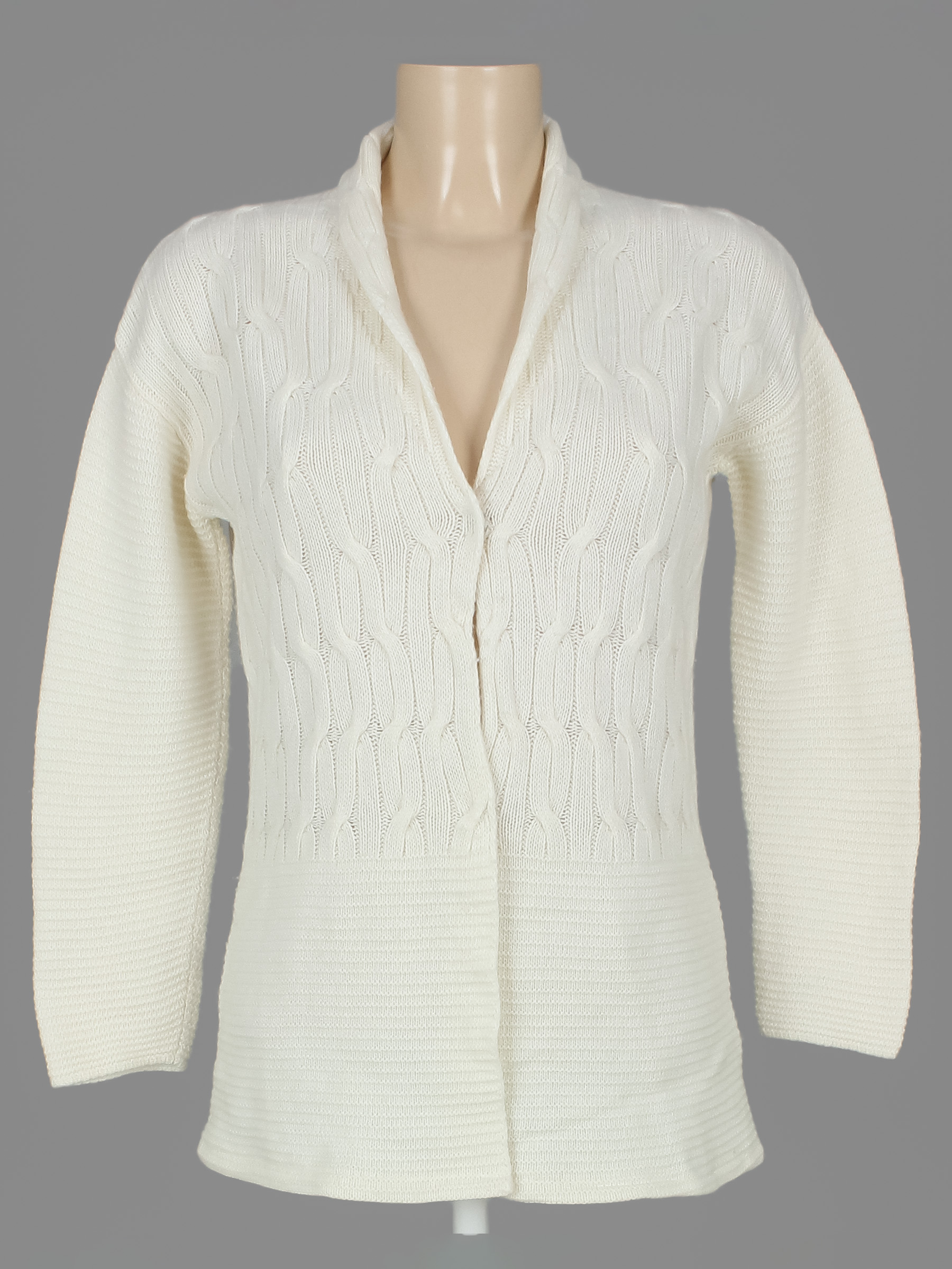 Маркировка на изделии отсутствует. Размер указан на основании замеров. Замер рукава указан от горловины. Есть катышки.