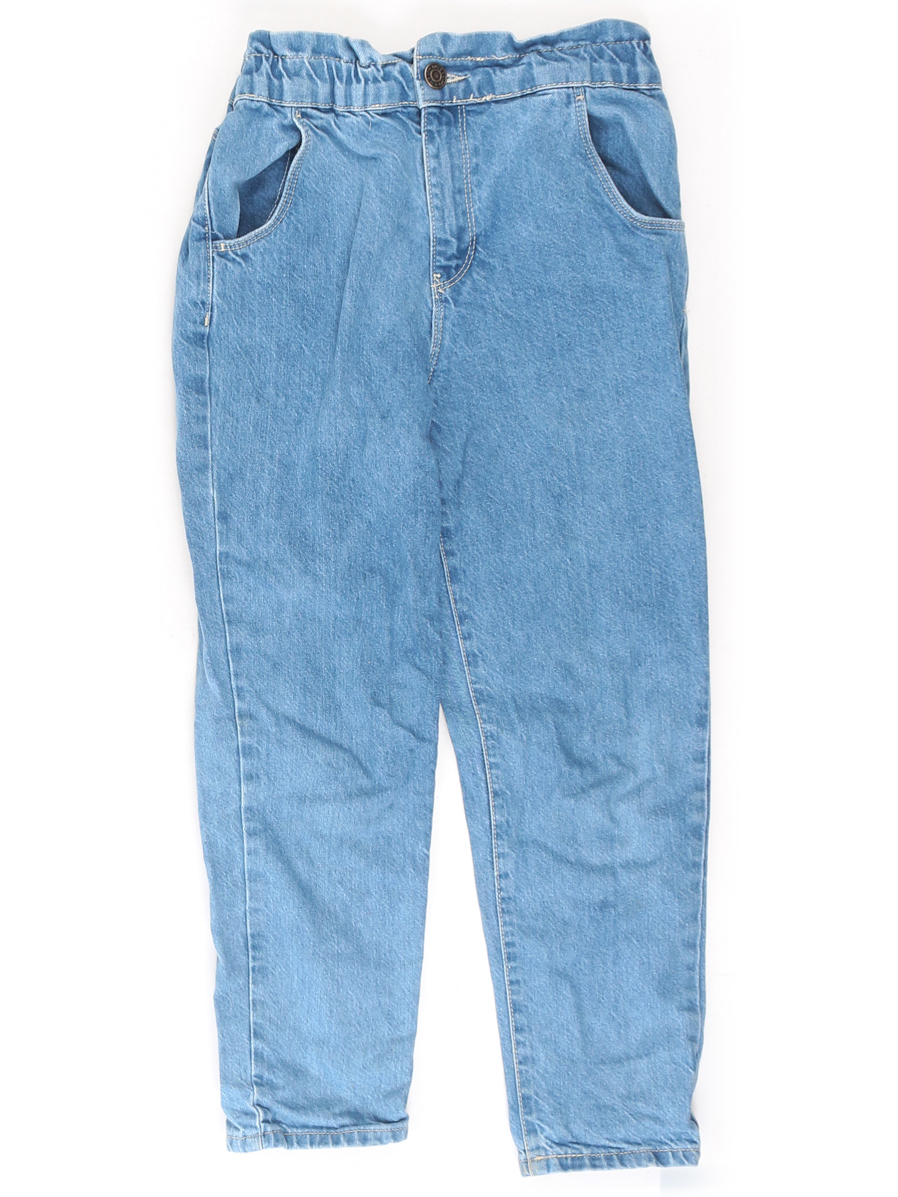Ткань местами выцвела, незначительно вытянулась, есть загрязнения, на поясе самостоятельно ушит материал.