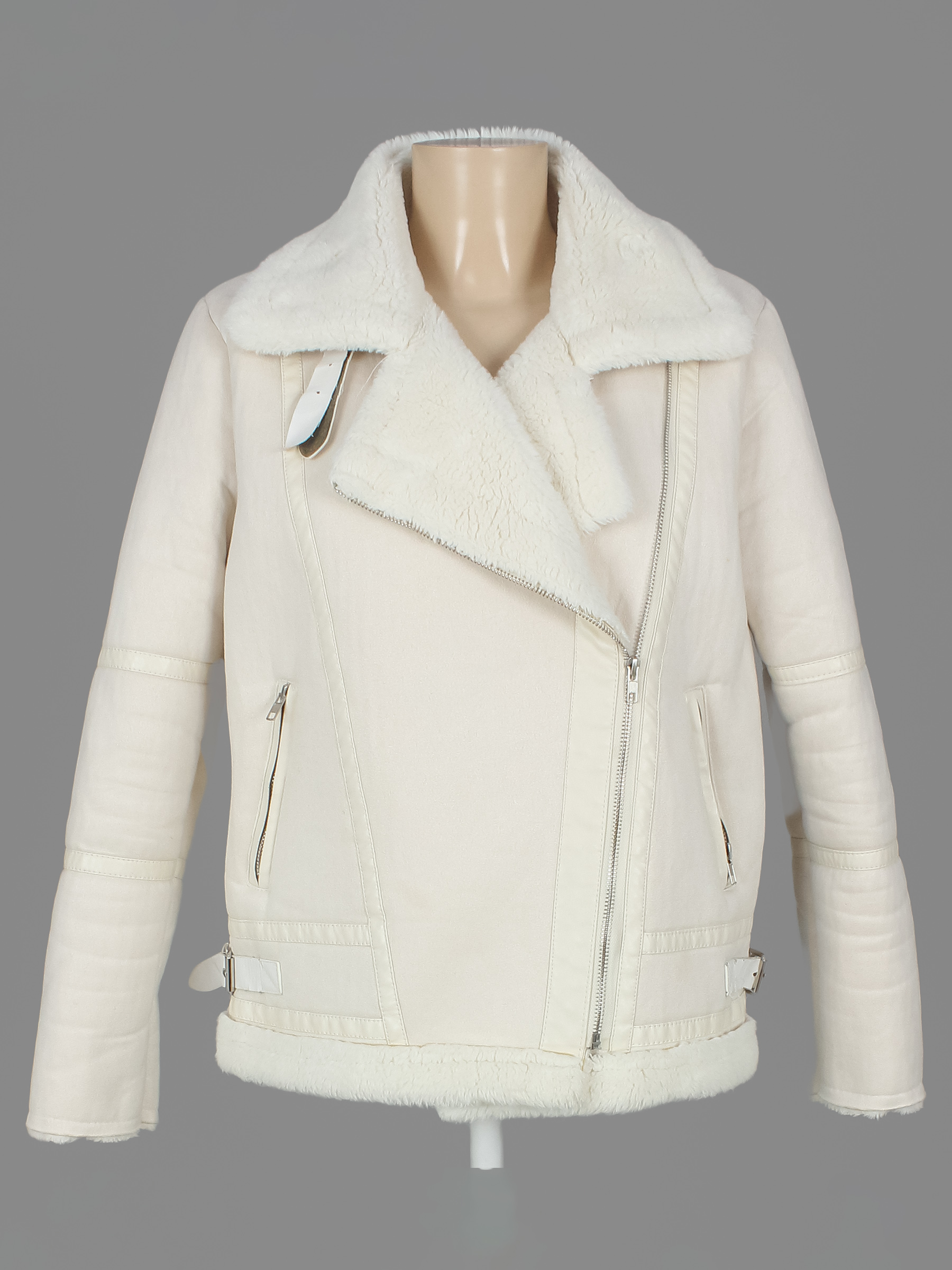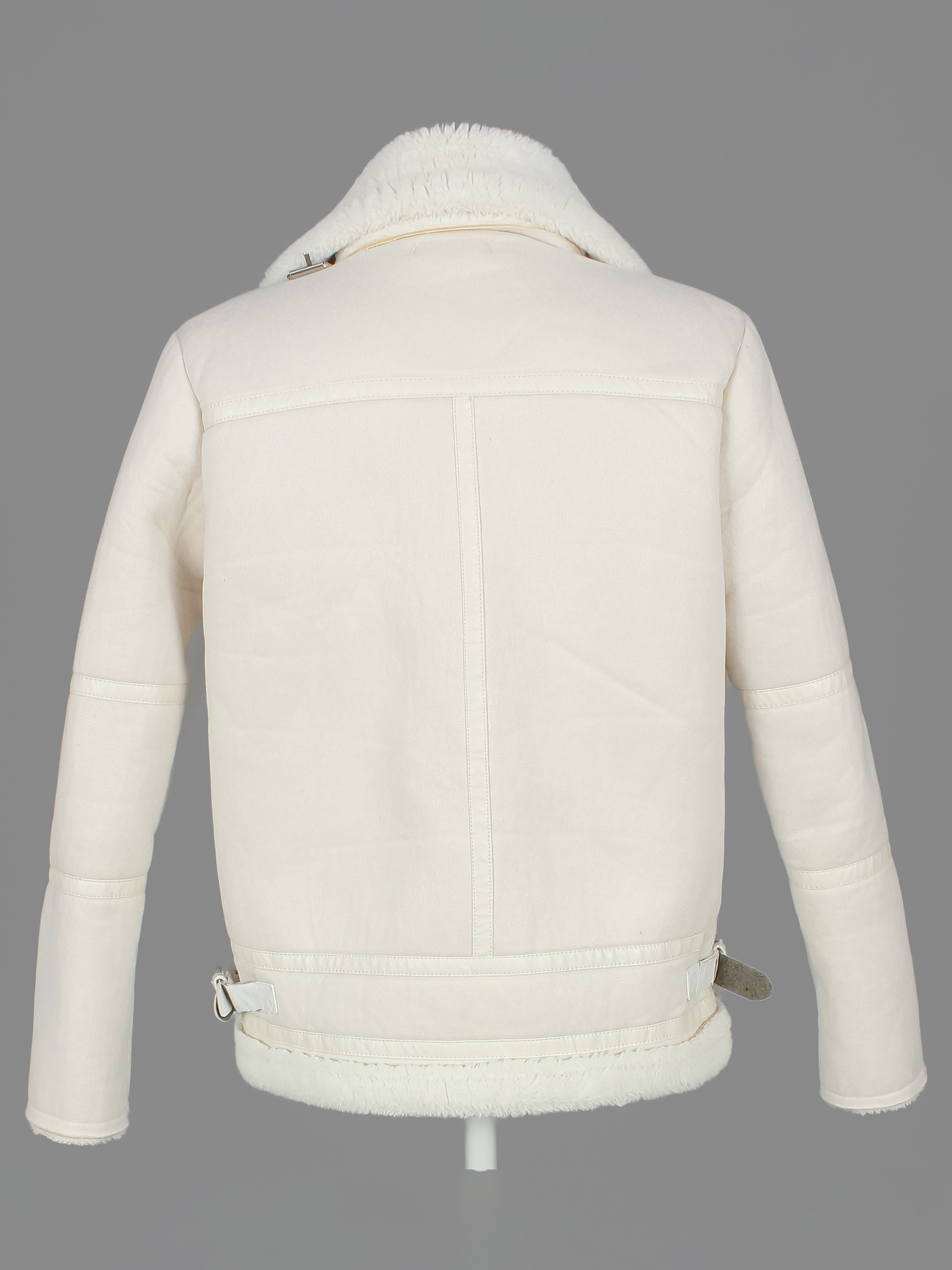 Маркировка на изделии отсутствует. Размер указан на основании замеров 42-44. Есть мелкие катышки, пятнышки, на ремешках повреждения материала, расклеивается материал на воротникой части.