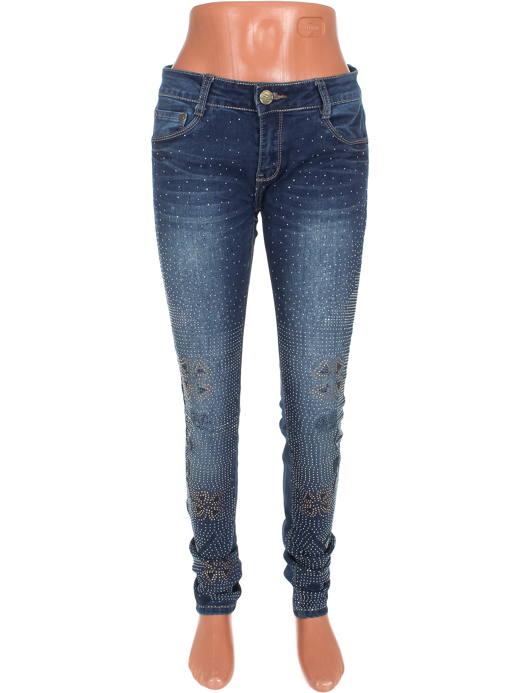 Есть небольшие загрязнения (возможно отстираются) и потертость по низу. Стразы частично отсутствуют.