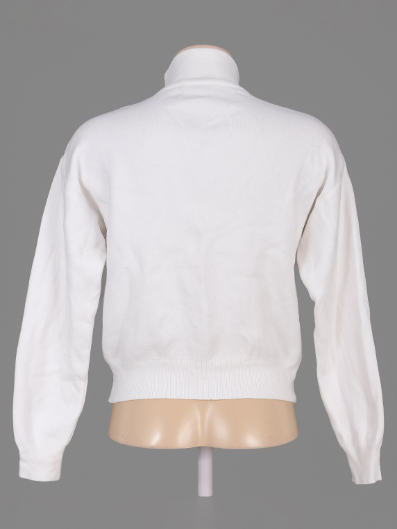 Маркировка на изделии отсутствует. Размер указан на основании замеров. Замер рукава указан от горловины. Есть катышки, пятнышки.