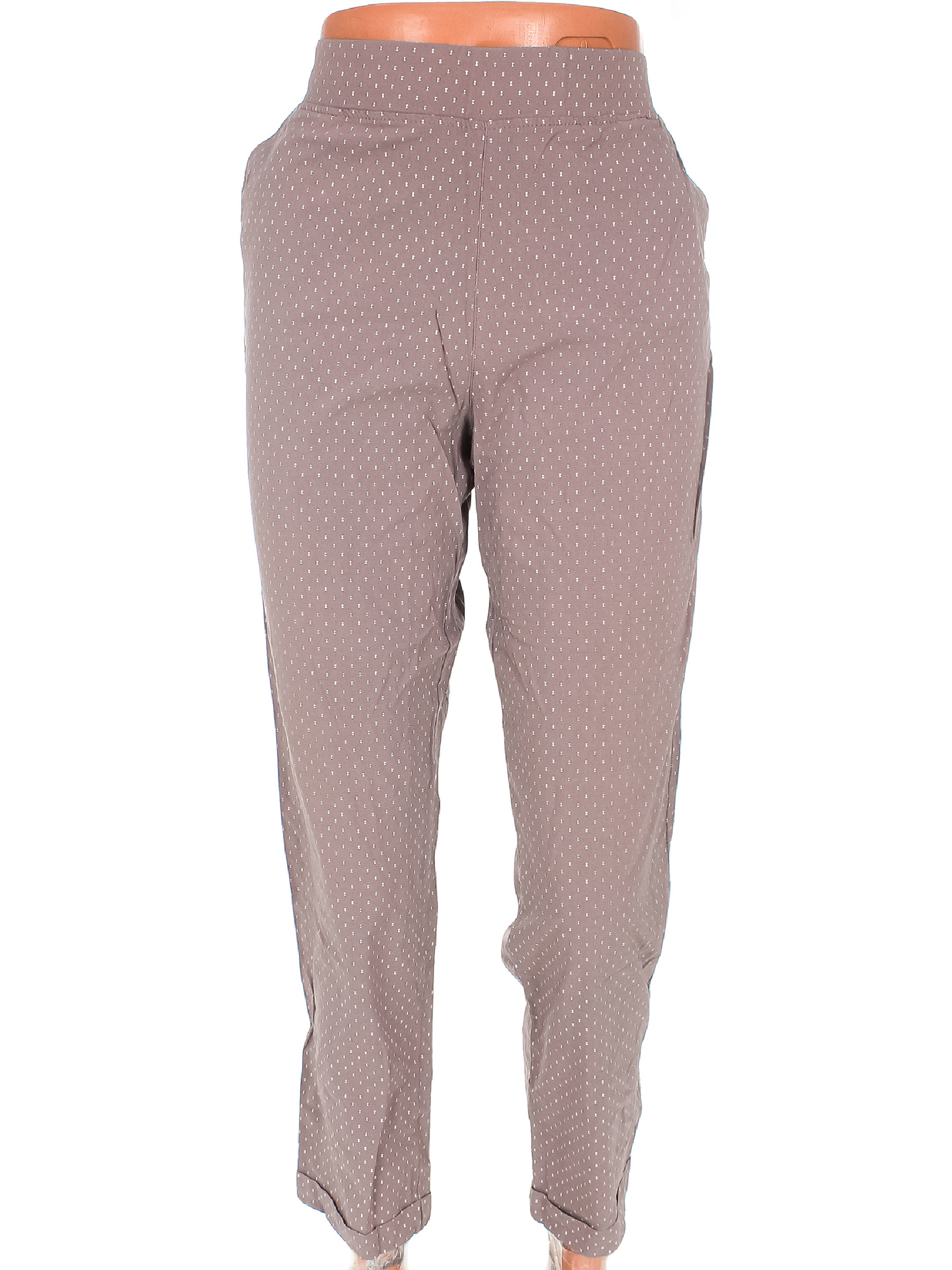 Маркировка на изделии 50. Размер указан на основании замеров. Серо-сиреневый 44-46. Ткань потускнела, незначительно вытянулась по швам.