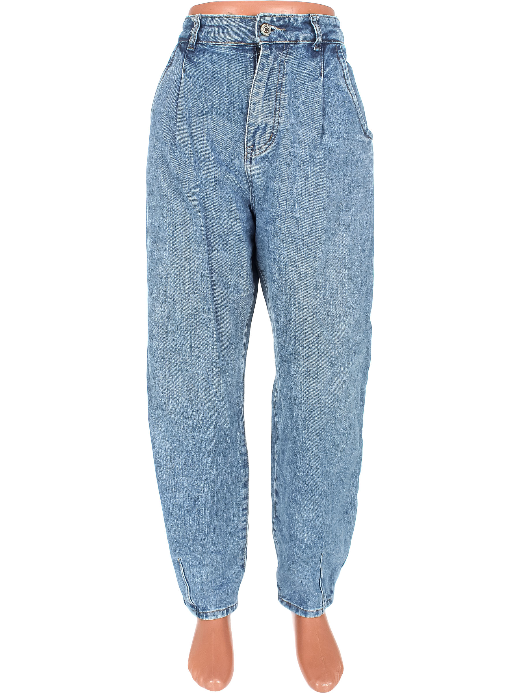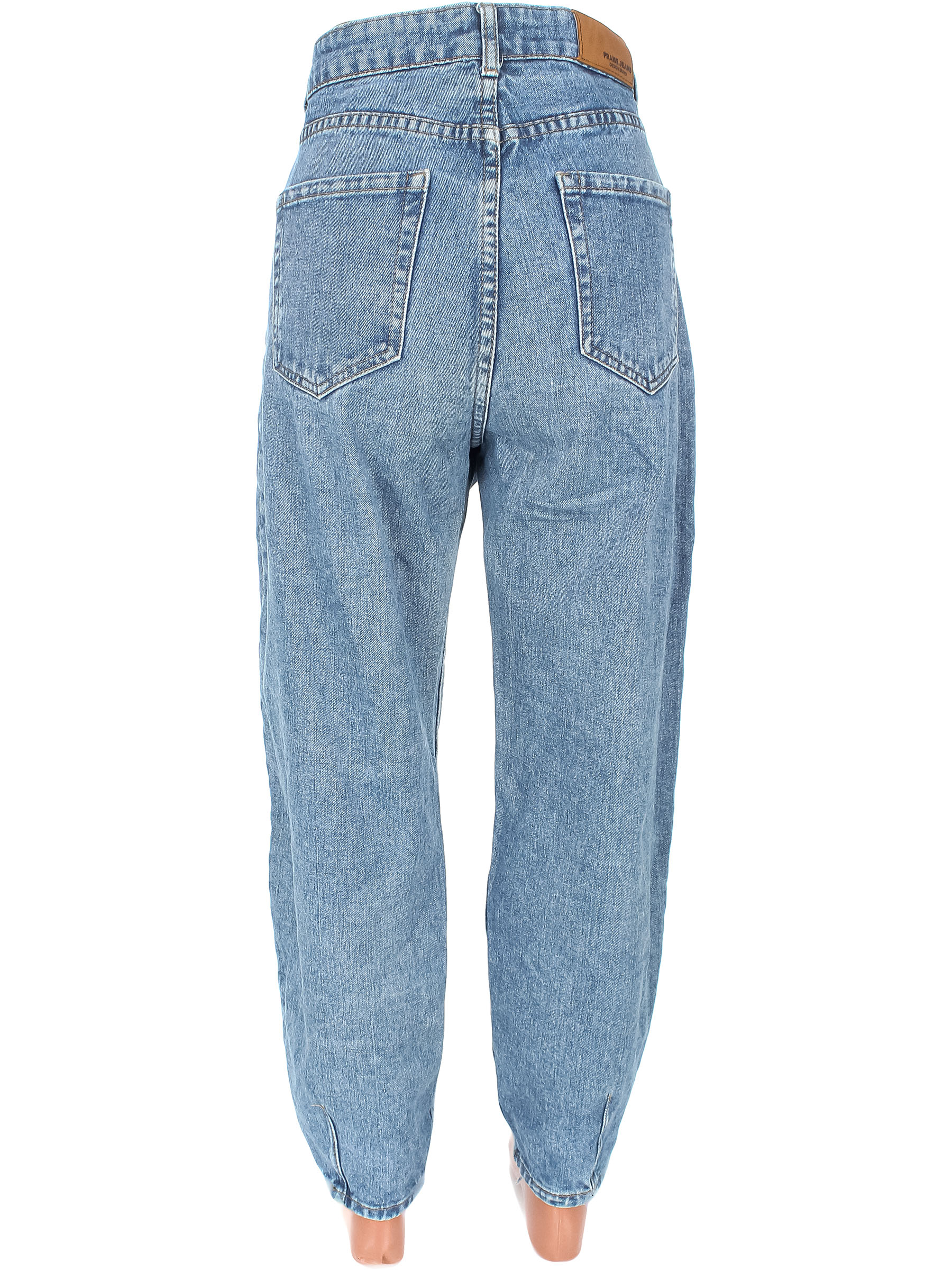 Повреждена петелька для пуговицы на поясе. Есть загрязнения, ткань местами выцвела. Незначительно вытянулась по швам, небольшие потертости материала.