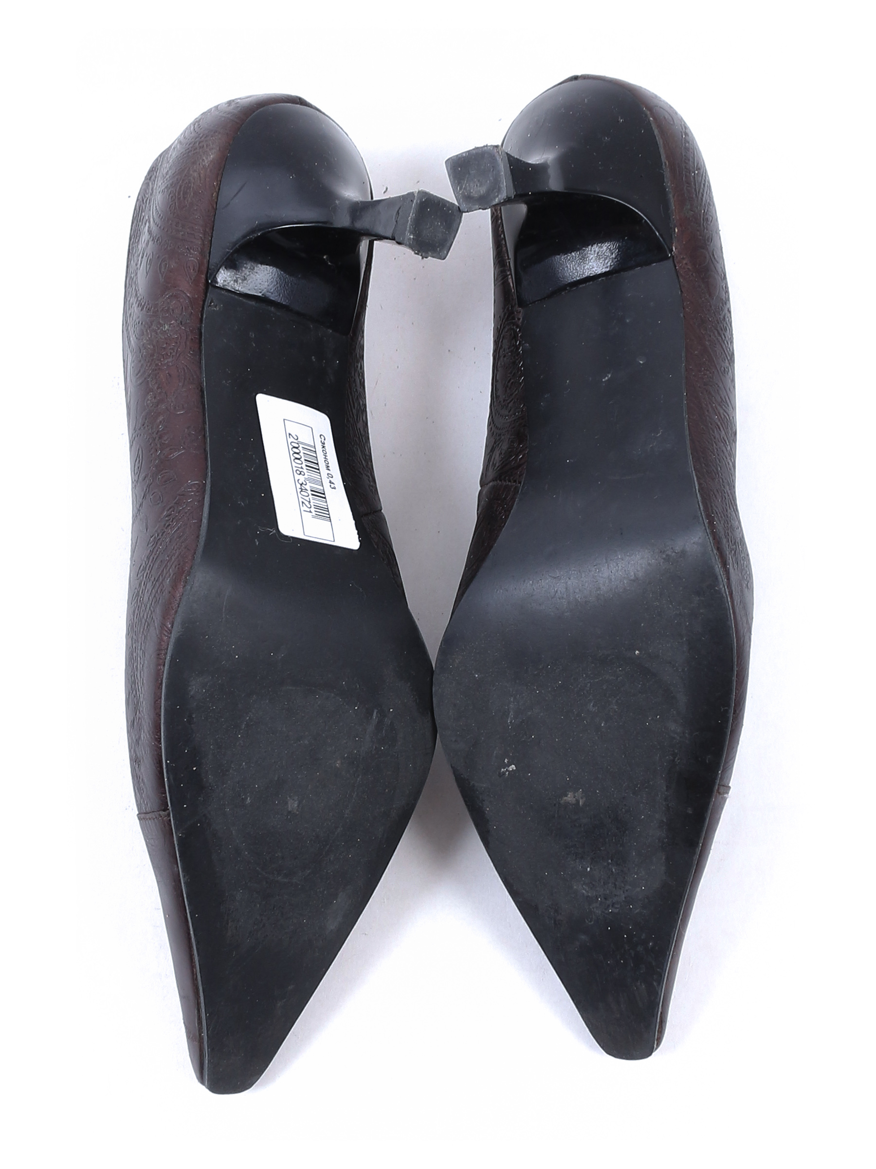 Маркировка на изделии 5,5. Размер указан на основании замеров 38-39. Длина по внутренней стельке указана с учетом носка. Есть загрязнения, заломы, потертости материала, царапины, небольшой износ подошвы.