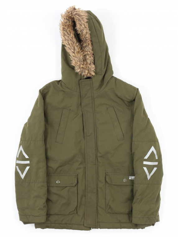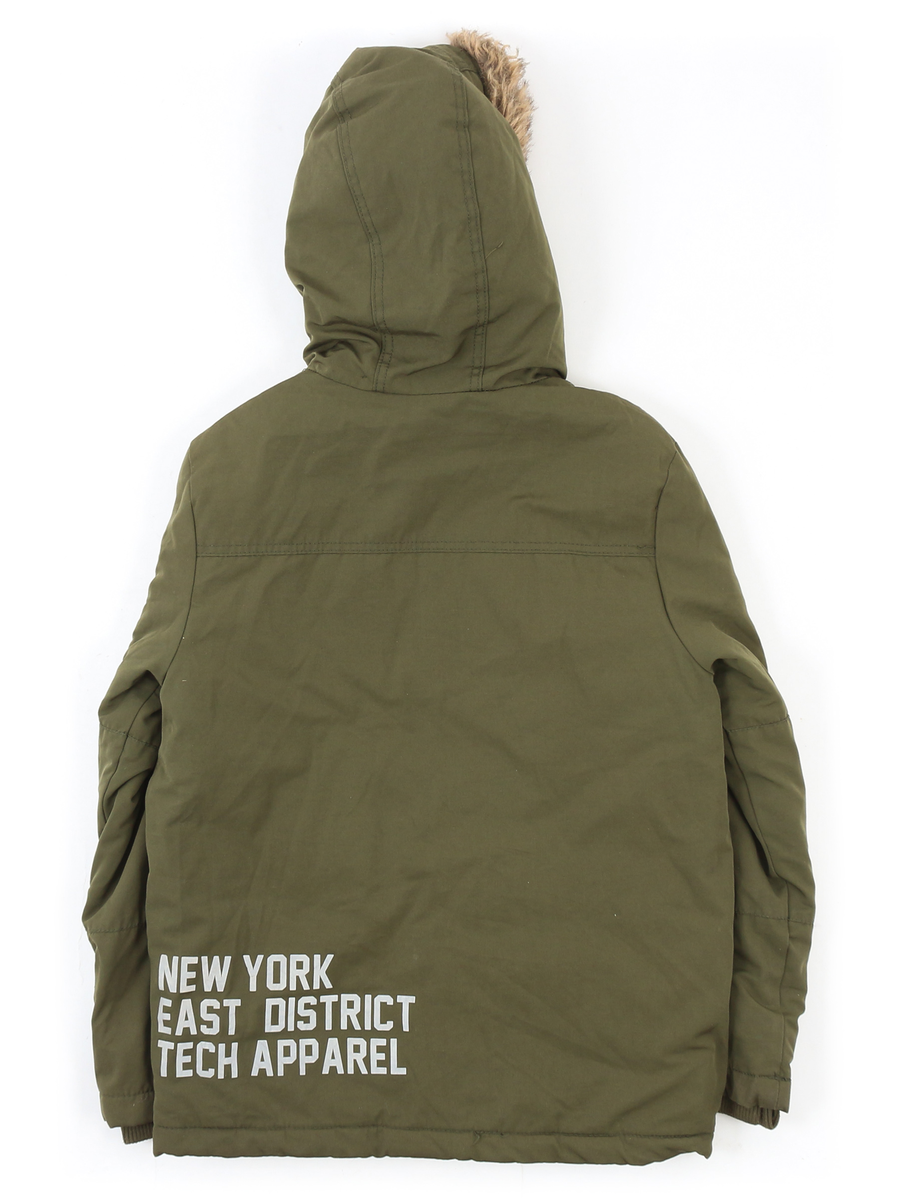 Есть небольшие загрязнения (возможно отстираются). Материал с внутренней стороны и мех скатались. Есть дырочка под капюшоном. Распускается строчка на кармане.