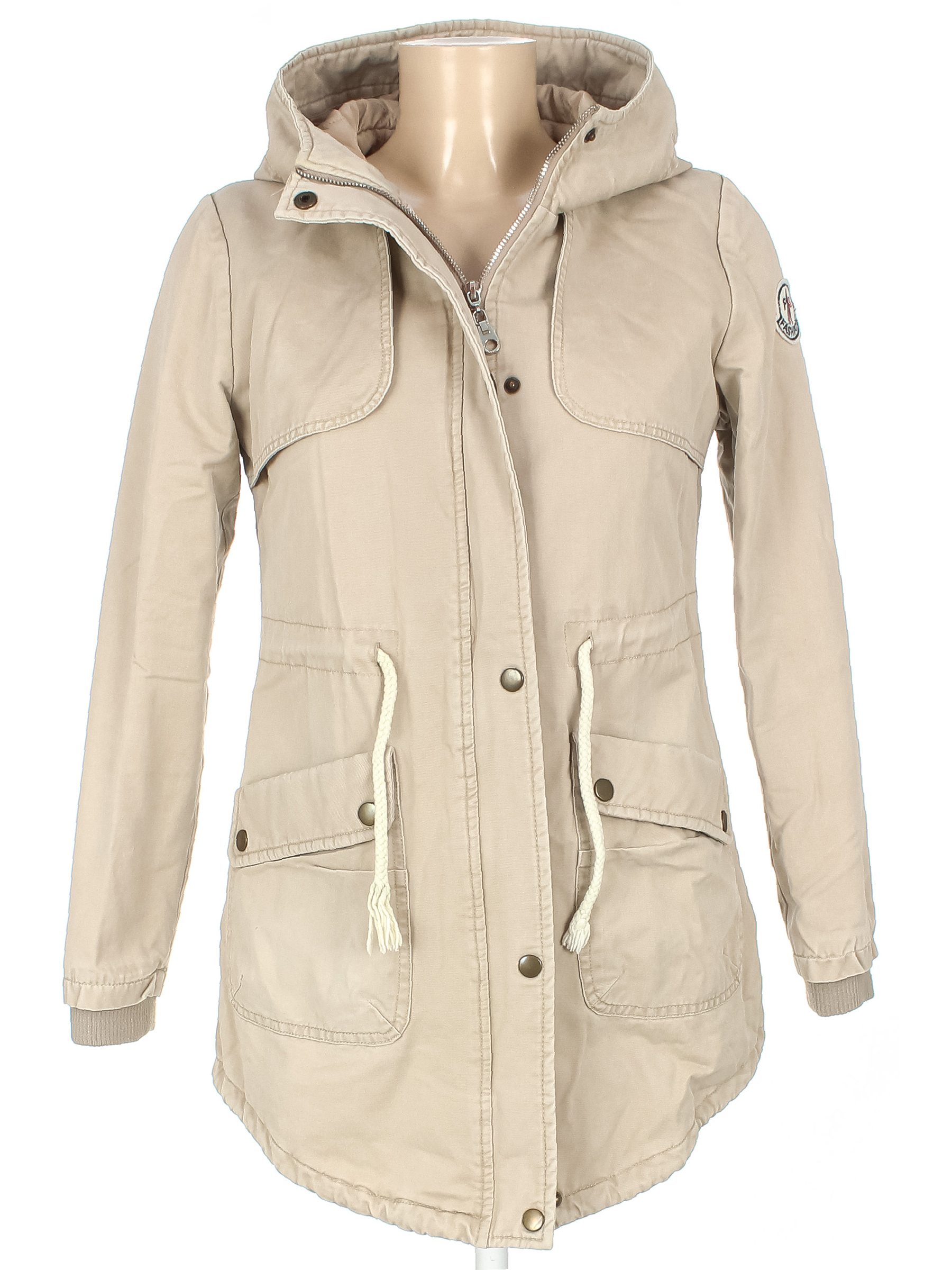 Есть небольшие потёртости материала по швам. Зацепки на подкладочной ткани. Катышки на манжетах.
