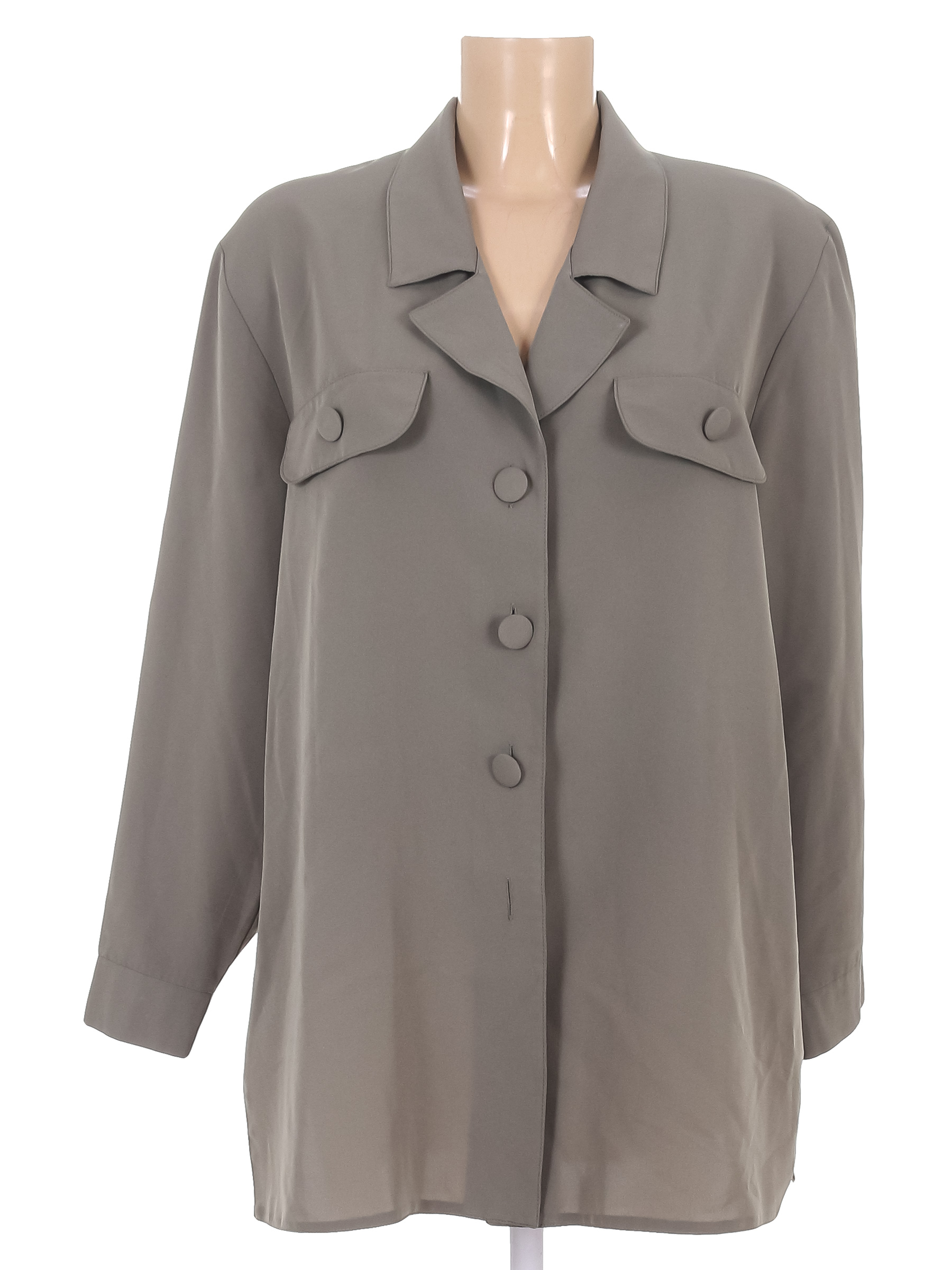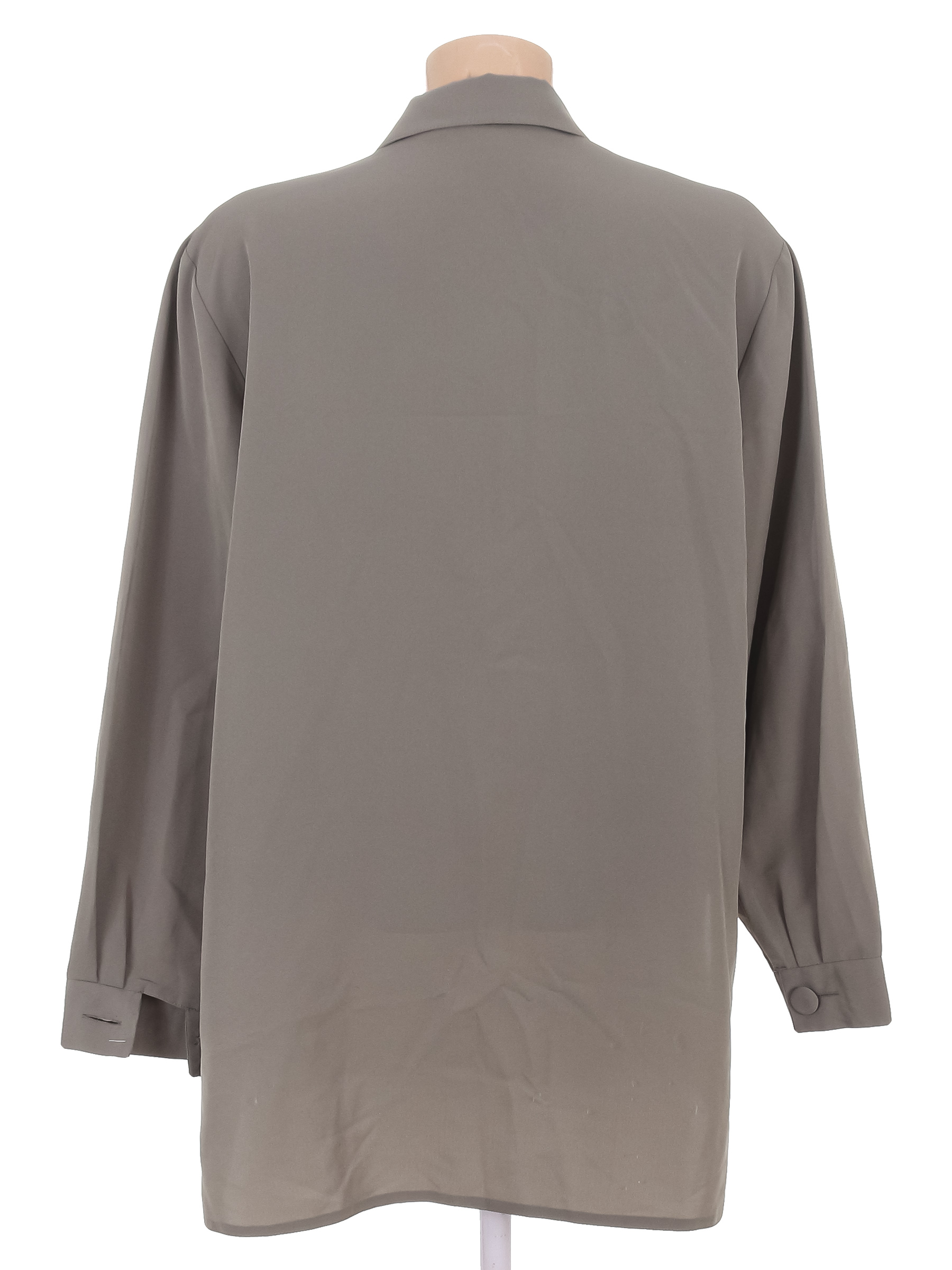 Маркировка на изделии отсутствует. Размер указан на основании замеров 52+-54. На манжете нет пуговицы. Небольшие загрязнения.