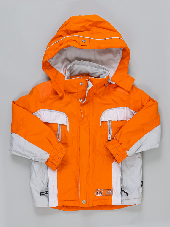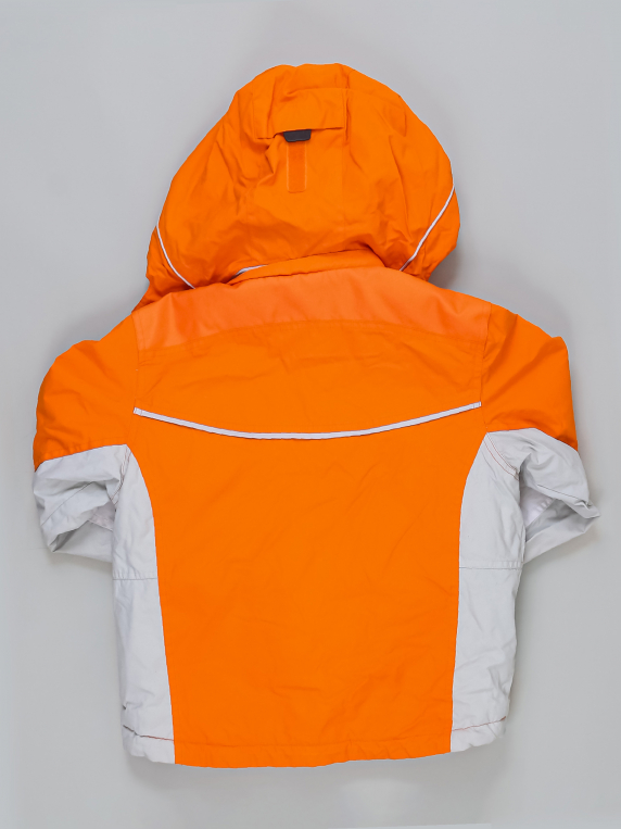 Есть небольшие загрязнения (возможно отстираются). На тёплую зиму. Потёртости на светоотражающих полосах. Катышки на манжетах.