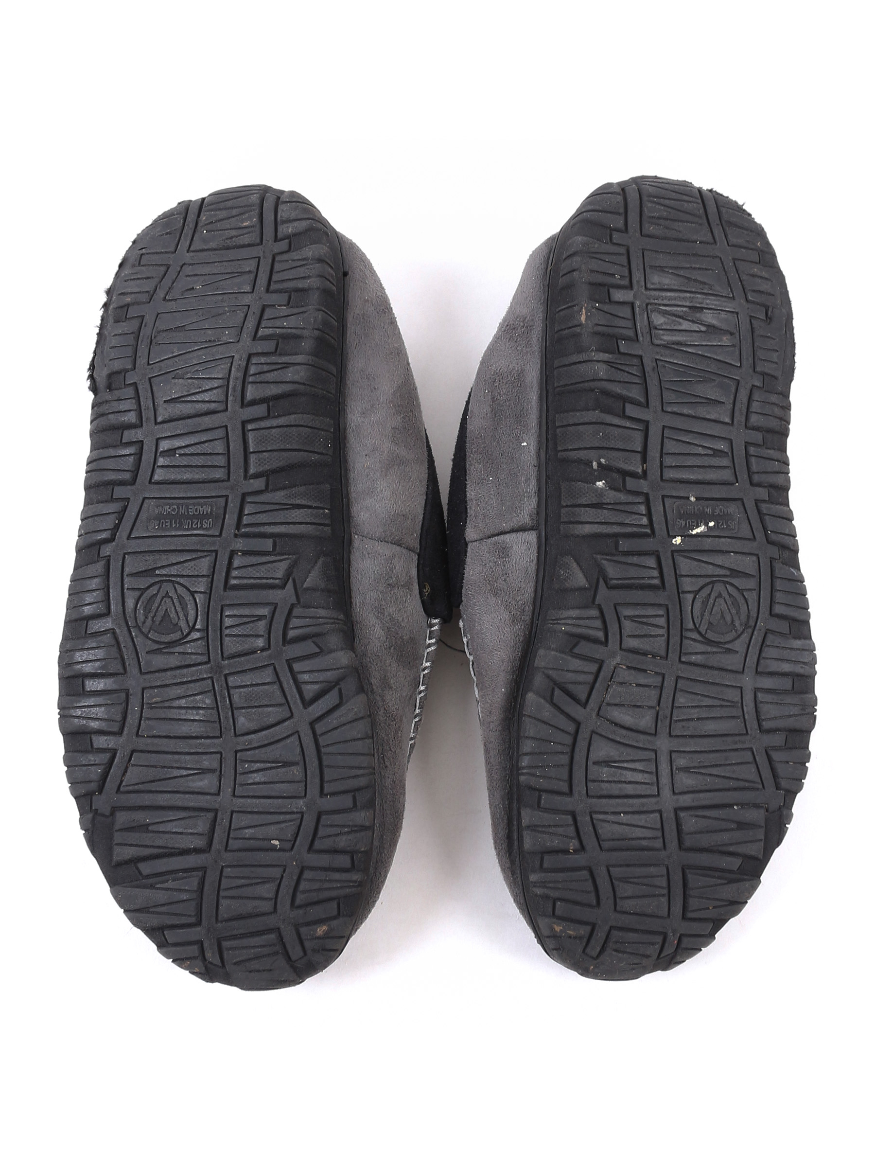 Маркировка на изделии UK 11. Размер указан на основании замеров. Есть загрязнения, заломы, стоптаны, износ подошвы, скатался ворс.