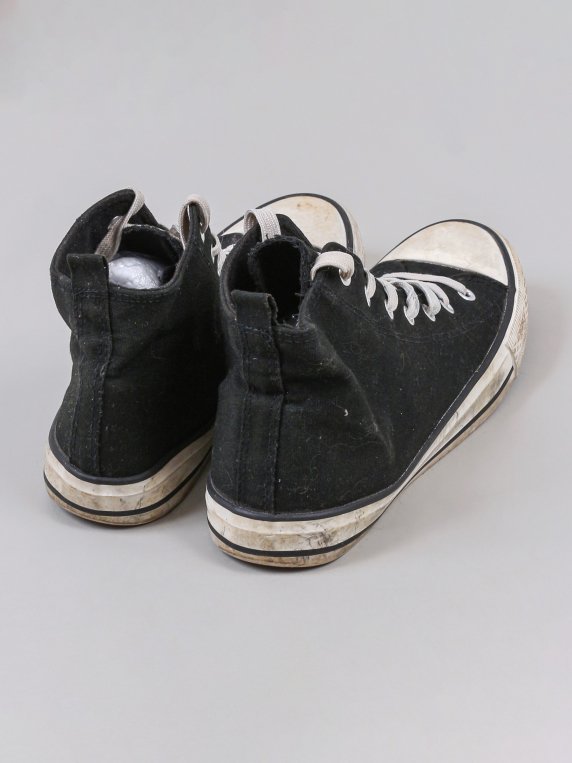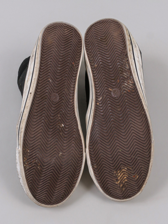 Есть загрязнения, катышки, царапины и потертости. Отклеивается подошва по бокам.