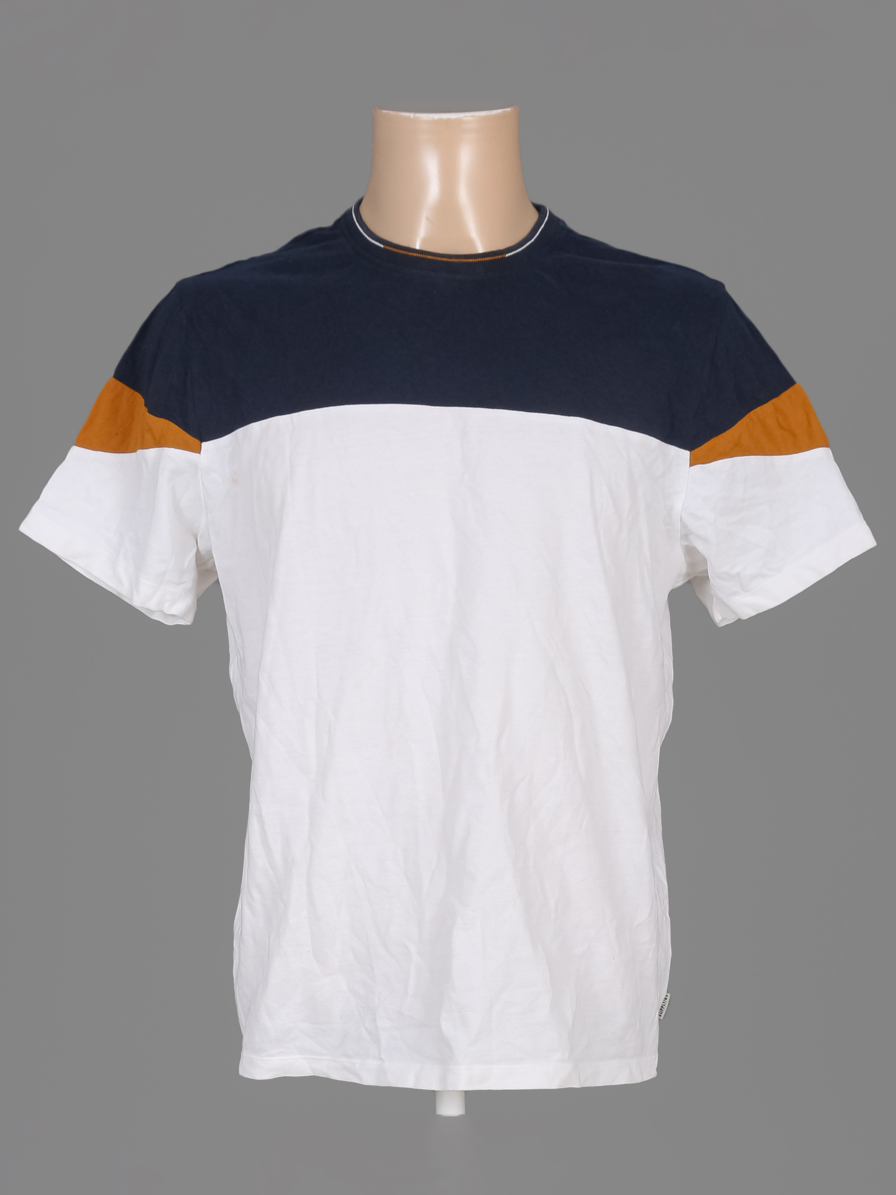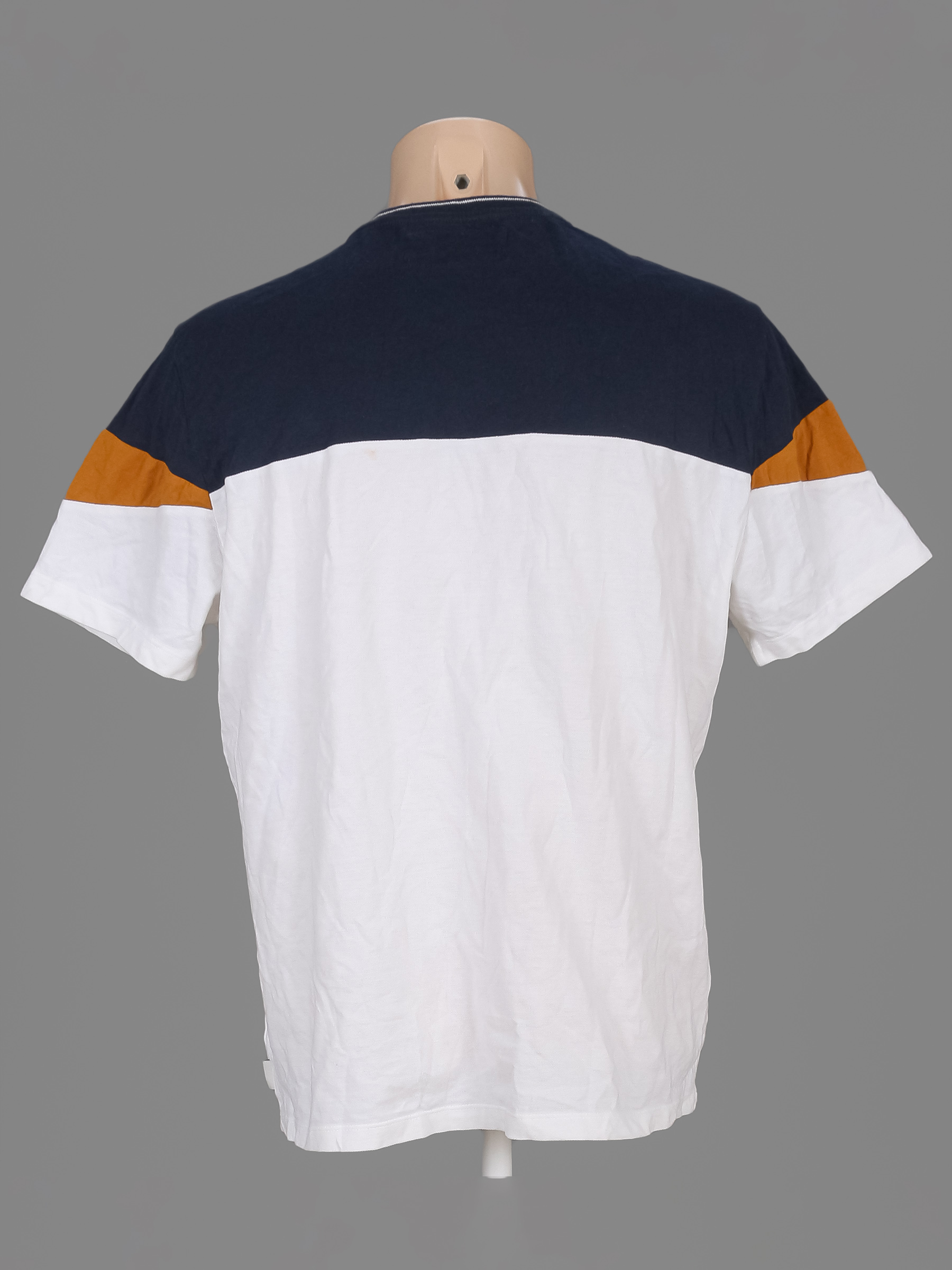 Есть небольшие загрязнения (возможно отстираются) и немного катышек. Цвет на горловине немного потускнел.