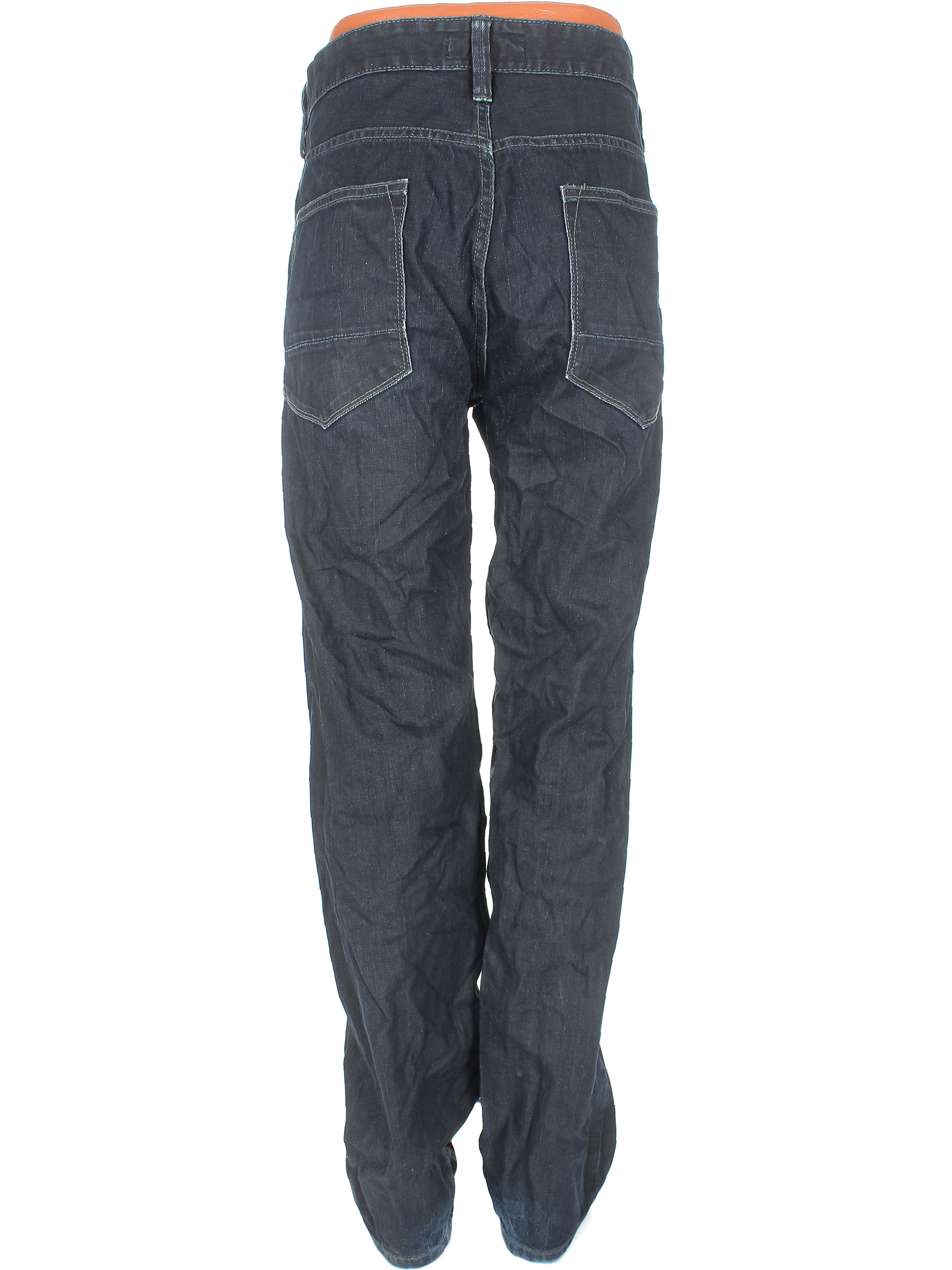 Размер 54-56. Есть катышки на внутренней части карманов. Ткань местами выцвела, незначительно вытянулась по швам, загрязнения, потертости материала.
