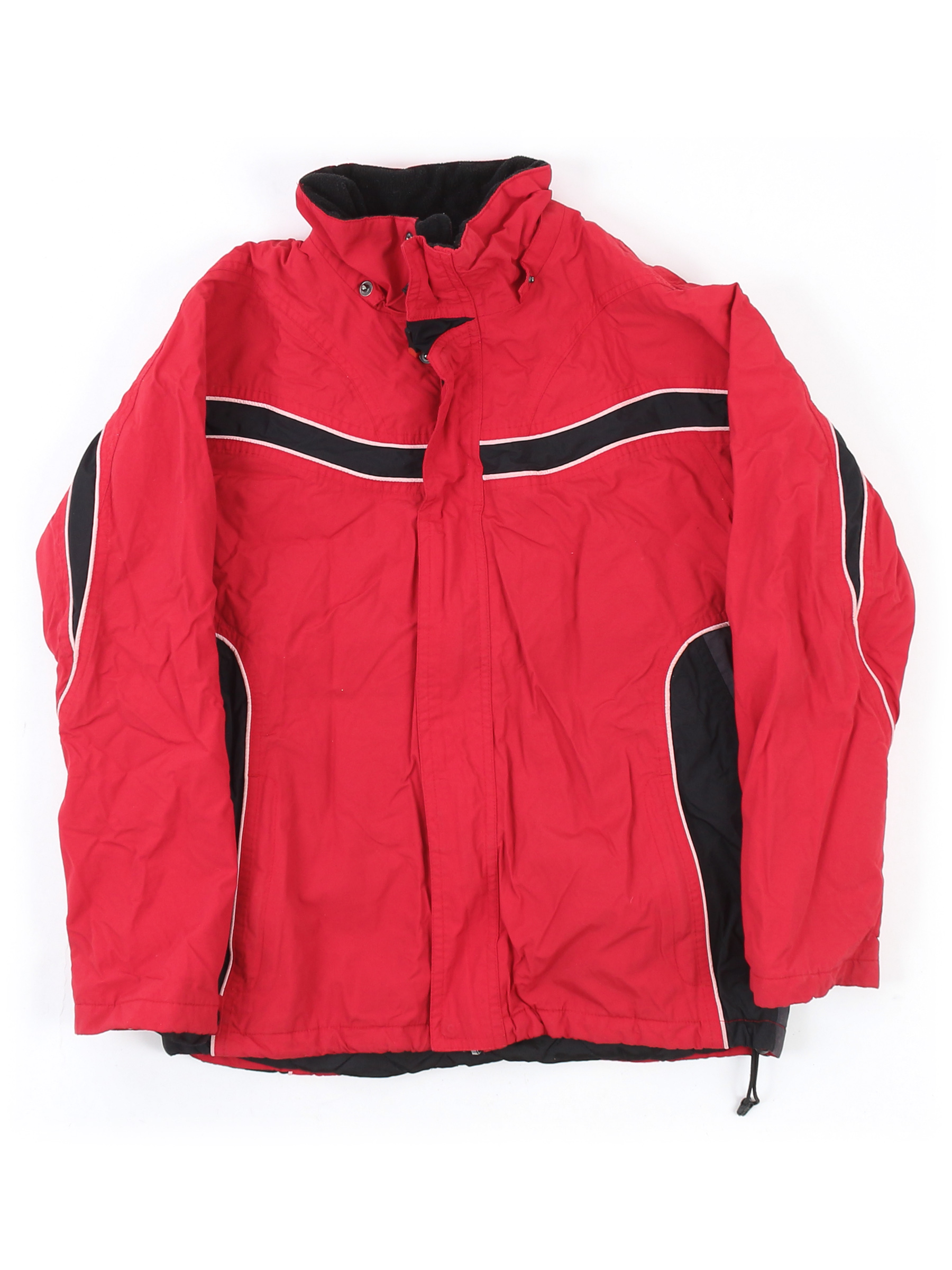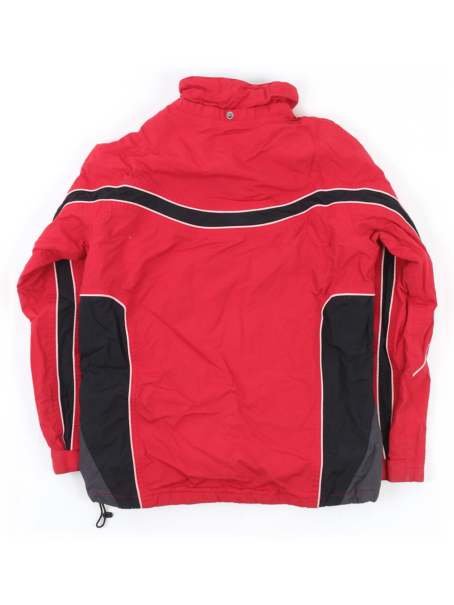 Нет капюшона. Замер рукава указан от горловины. Местами есть катышки, загрязнения, ткань потускнела, лоснится, потертости материала. Рвется петелька.