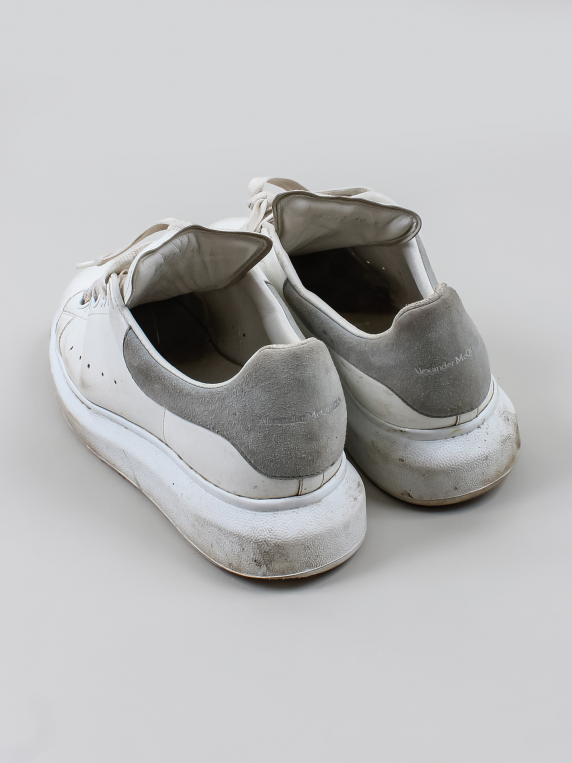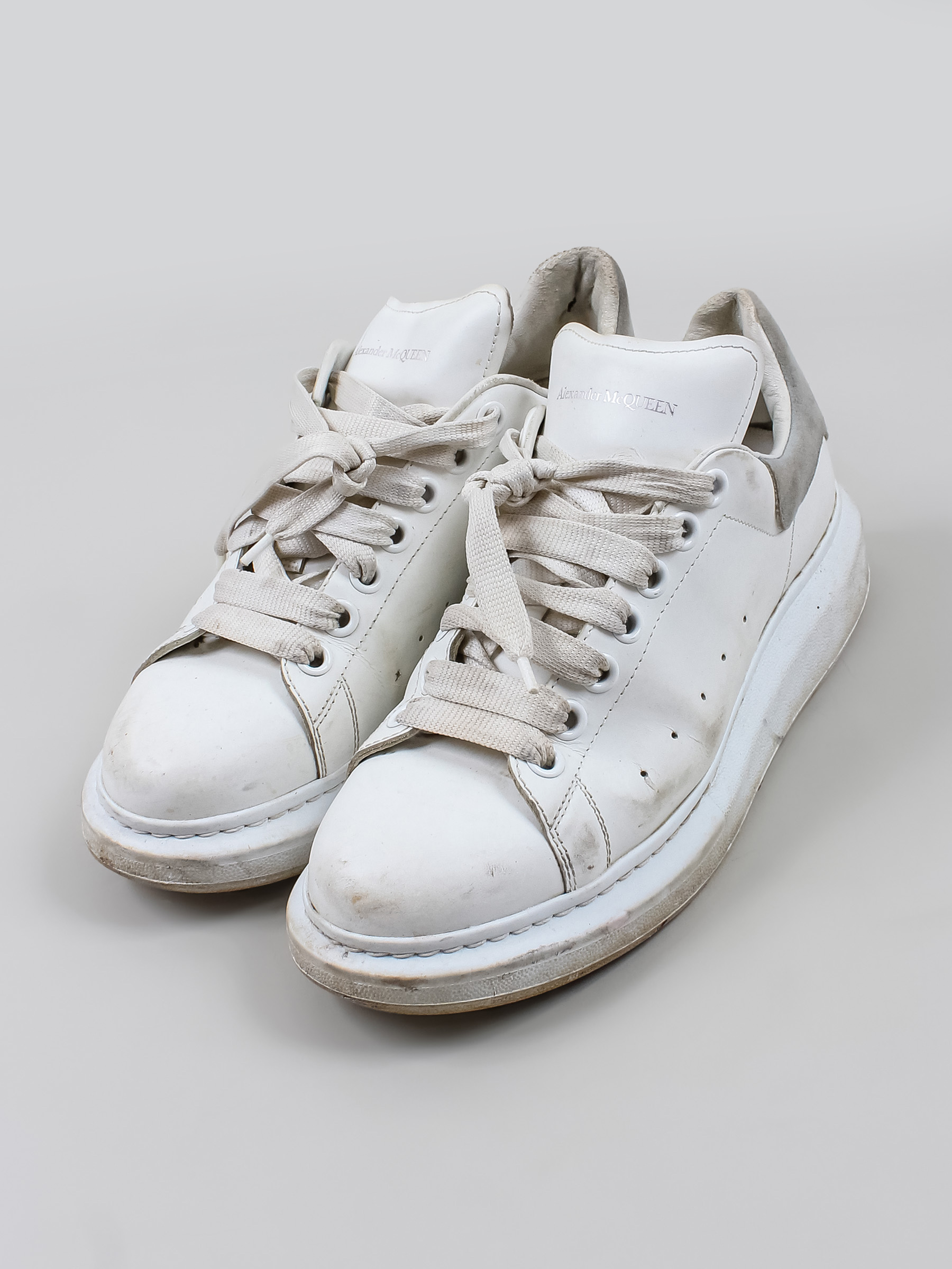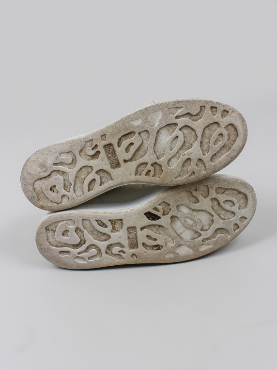 Есть заломы, загрязнения, царапины и потертости. С внутренней стороны у пятки есть дырочка.
