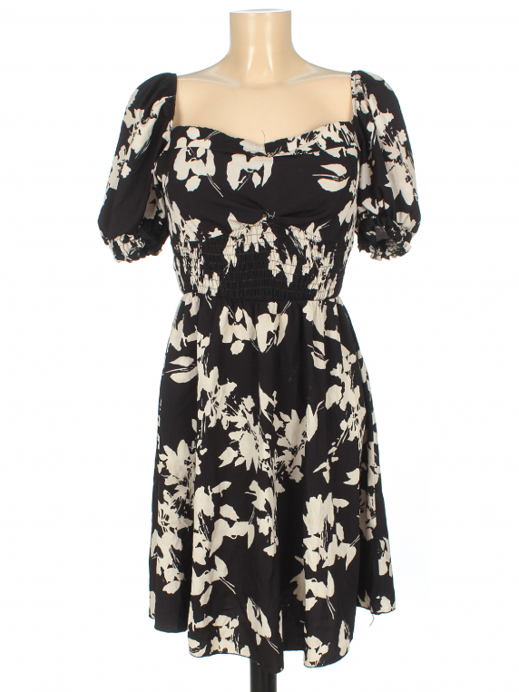 Немного распустилась строчка на груди. Небольшие загрязнения. Небольшая зацепка спереди внизу юбки.