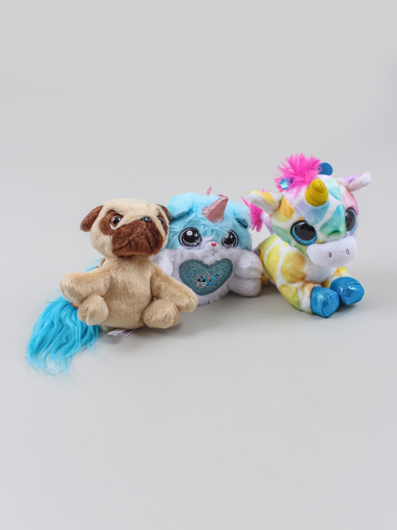 3 средних игрушки. На голубой игрушке есть небольшие загрязнения, немного скатался ворс.