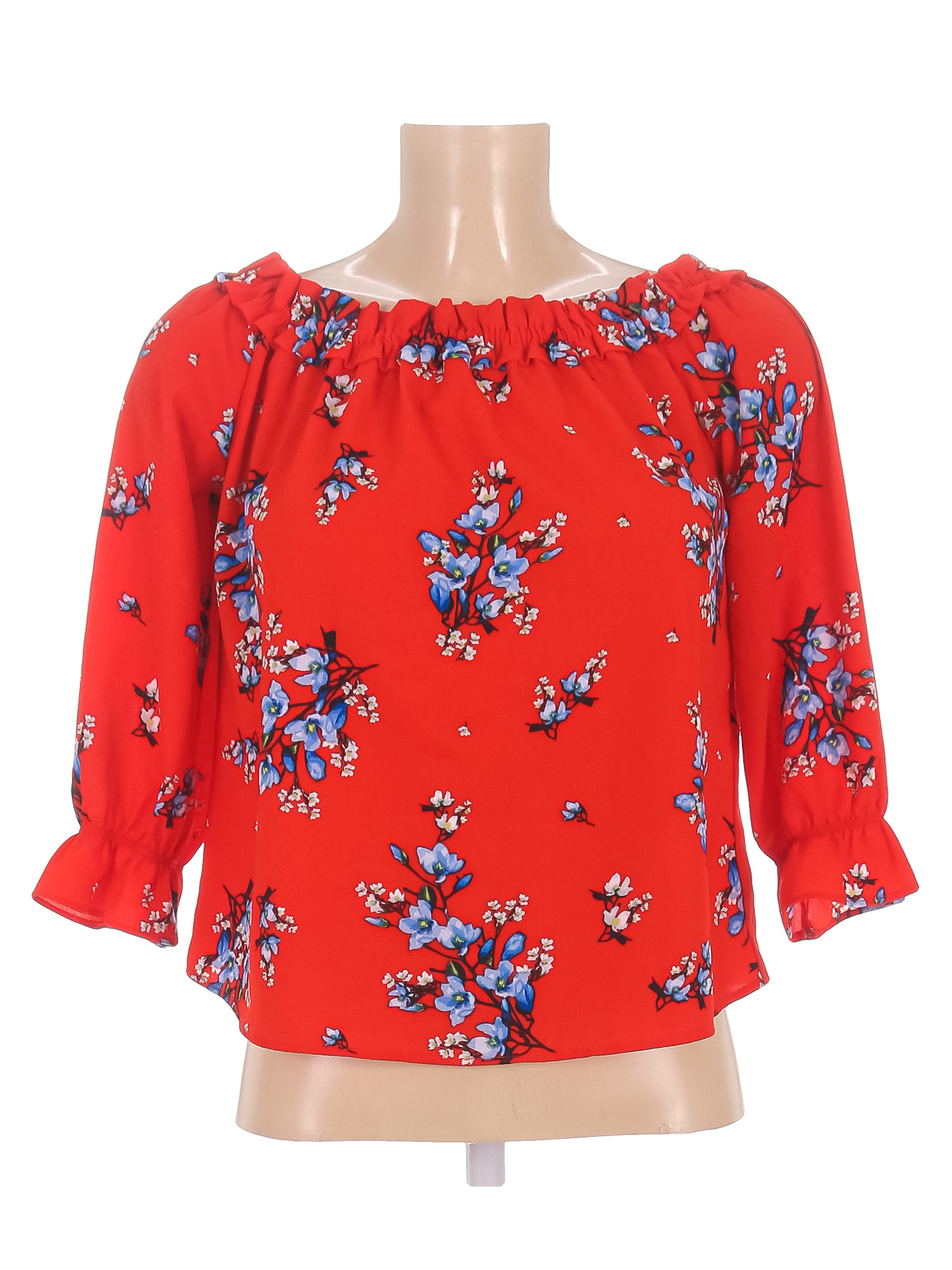 Замер рукава указан от горловины. Спереди есть затяжка, мелкое пятнышко.