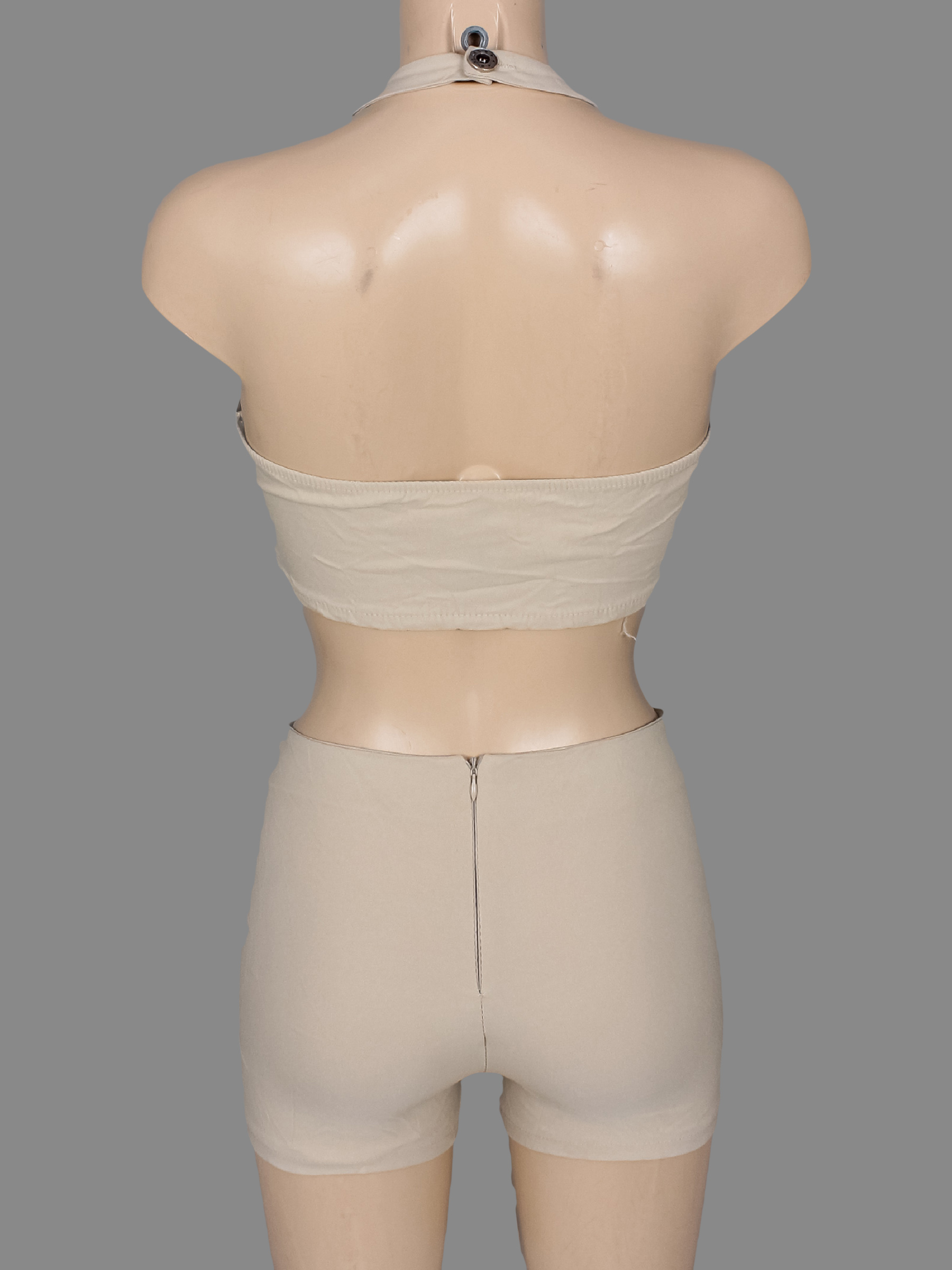Маркировка на изделии отсутствует. Размер указан на основании замеров. Немного распускается строчка сзади у молнии на шортах.
