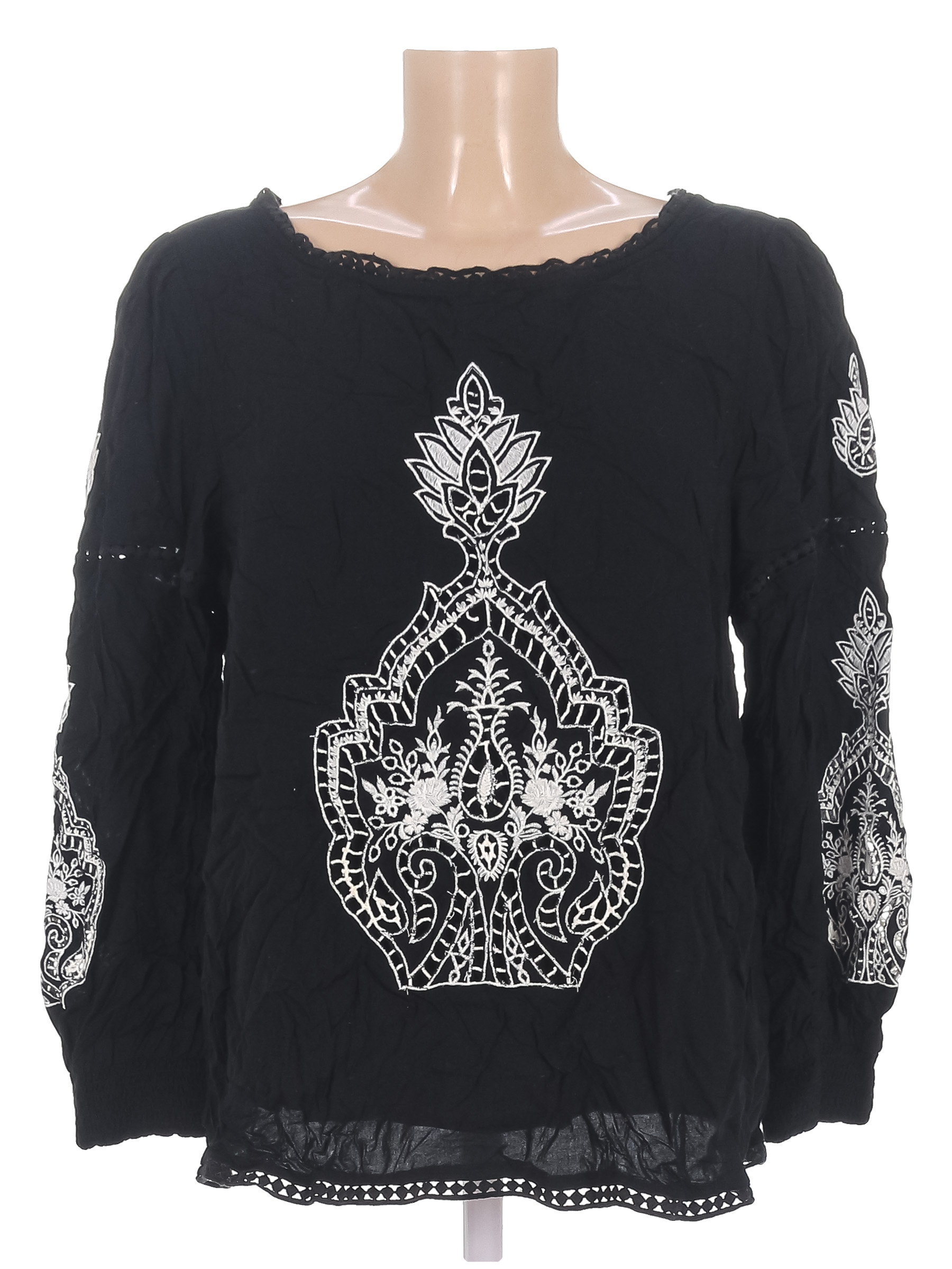 Есть катышки. Спереди декоративный элемент порван.