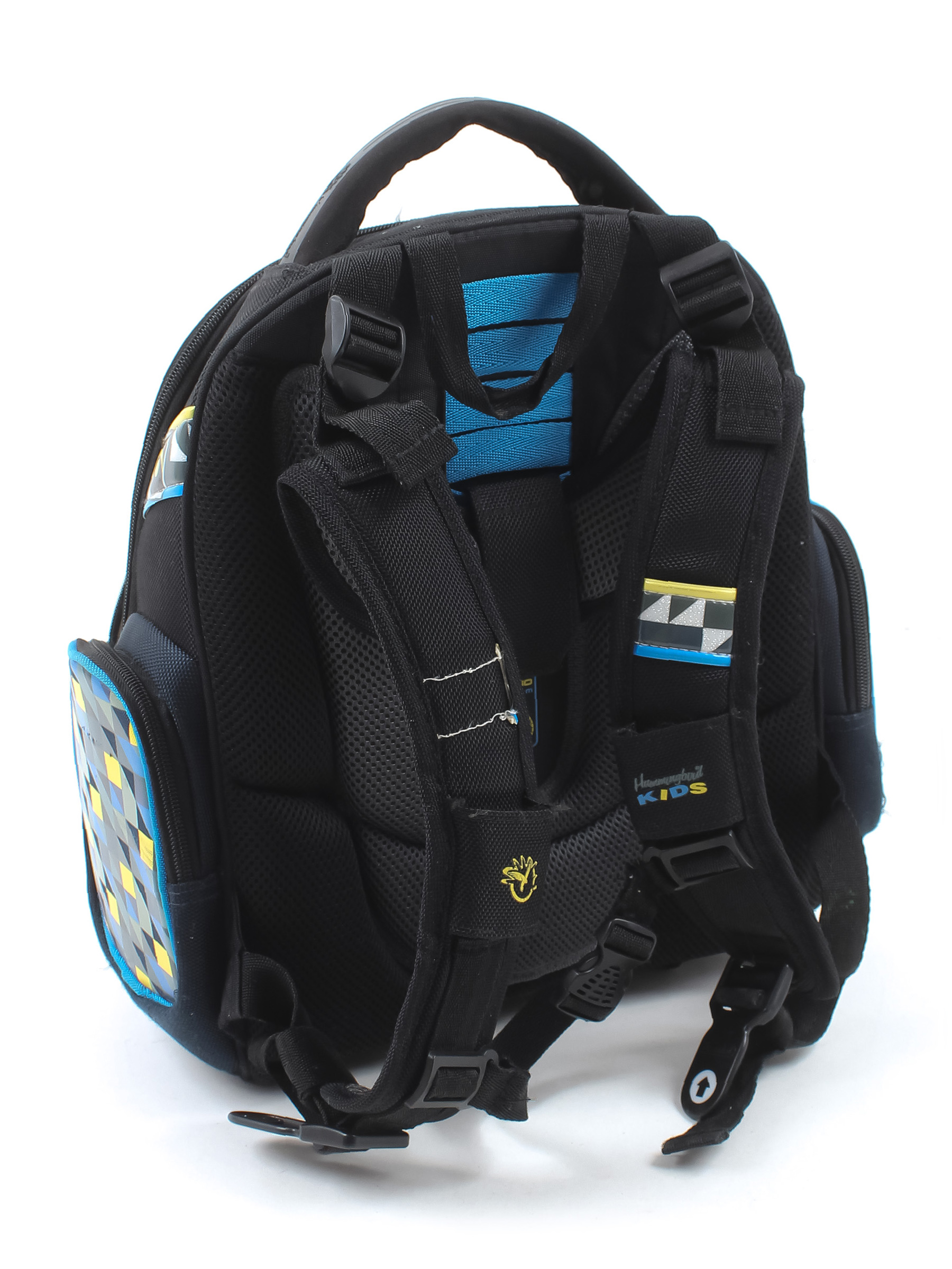 Внутри много мелких карманов. Есть загрязнения, потертости, скалывается краска на бегунках. Внутри расходится ткань по шву.