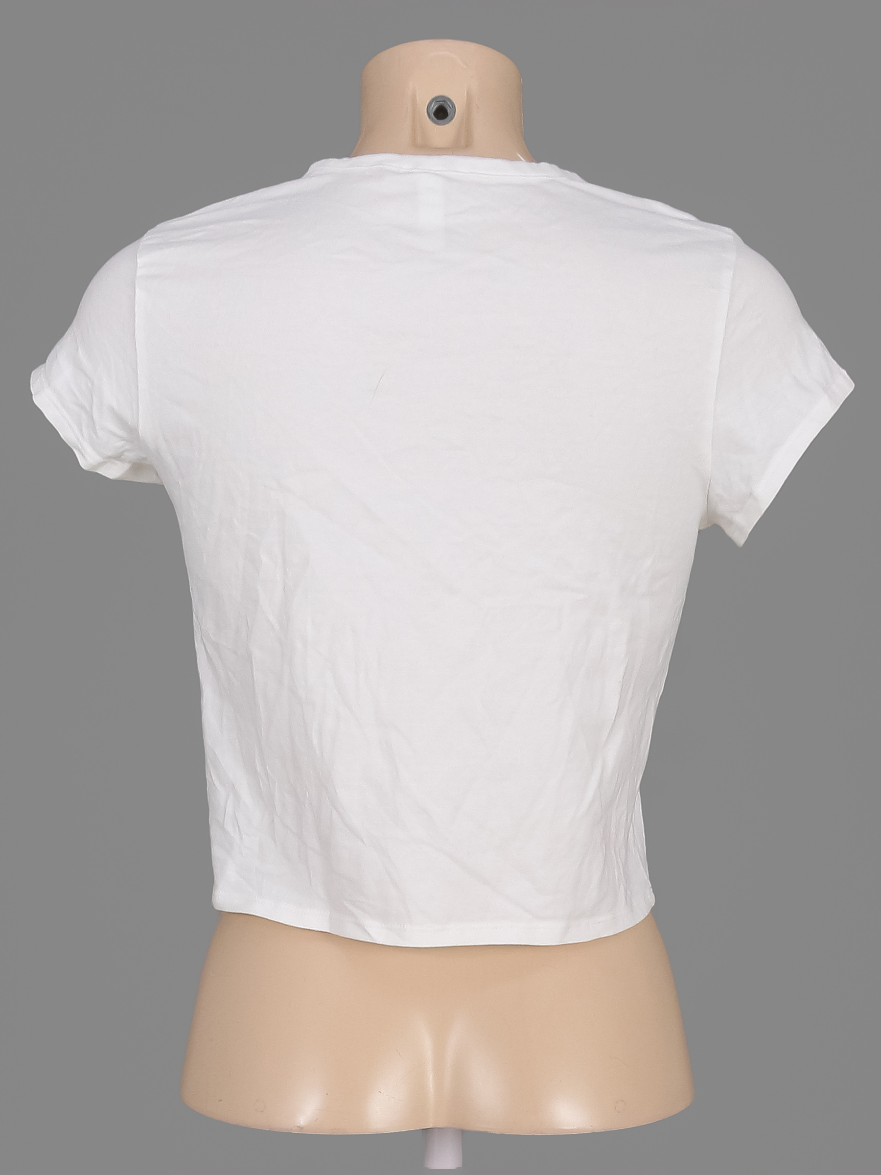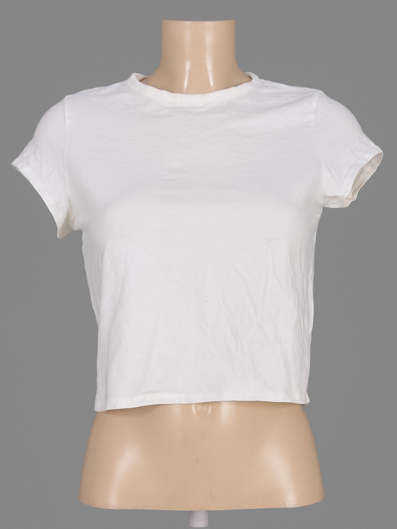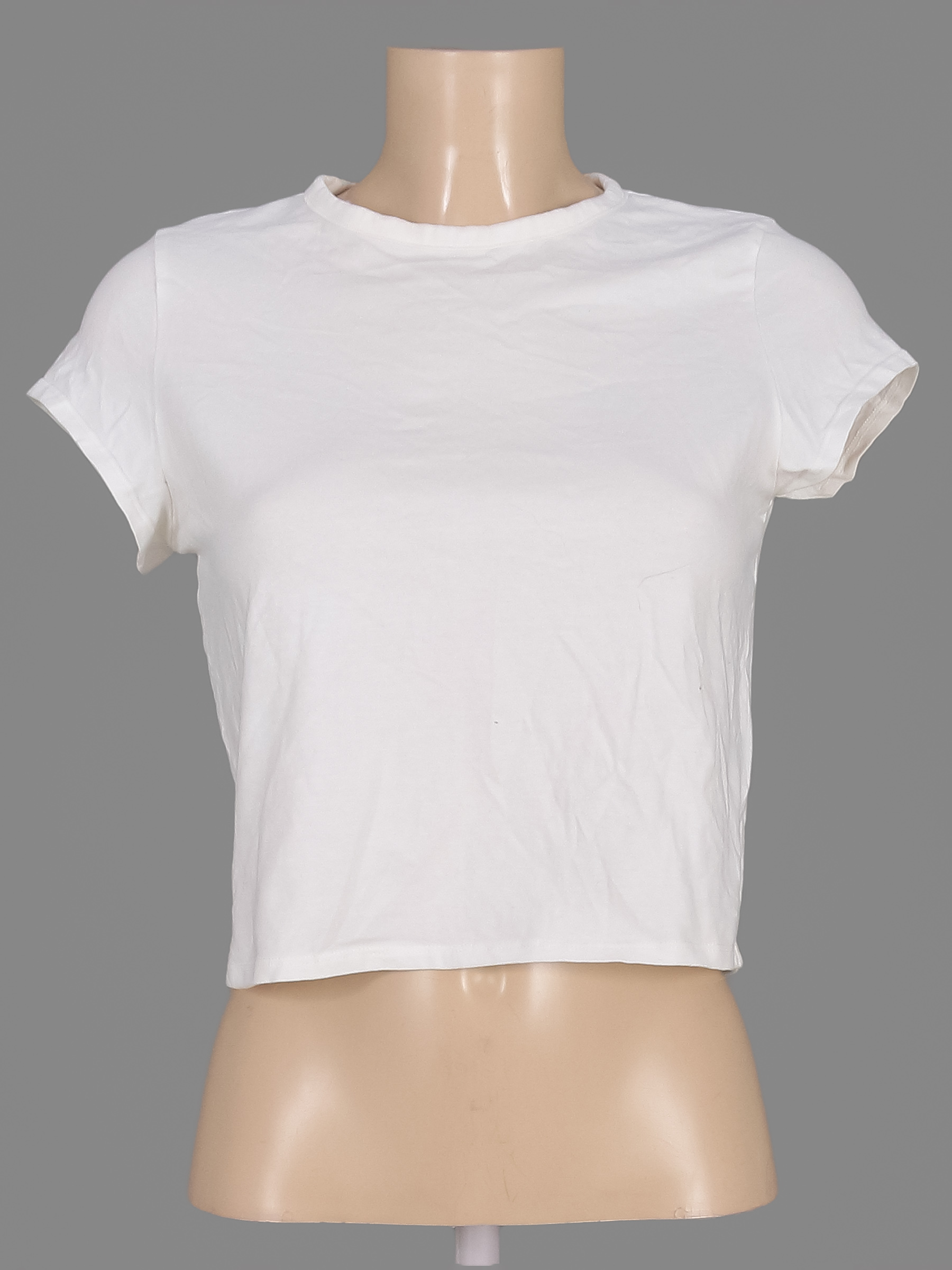 Материал по пройме и горловине пожелтел. Есть небольшой перекос.