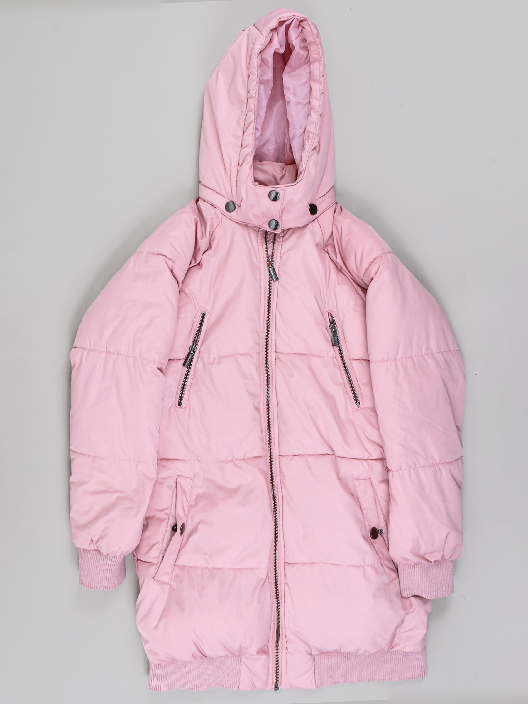 Есть катышки, пятнышки, загрязнения, местами сбился наполнитель. Замер рукава указан от горловины.