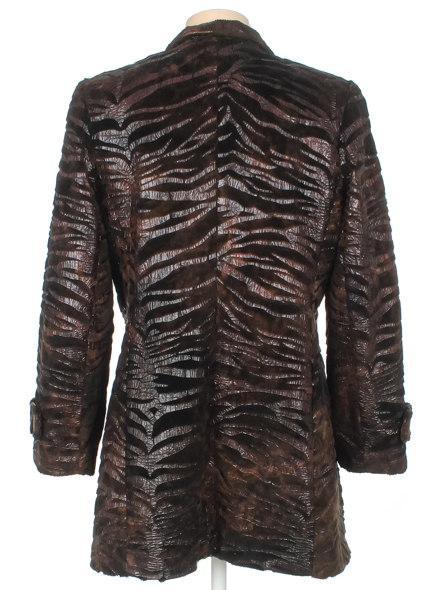 Маркировка на изделии отсутствует. Размер указан на основании замеров. Незначительно вытянута ткань по швам. Есть потертости. Материал потрескался.