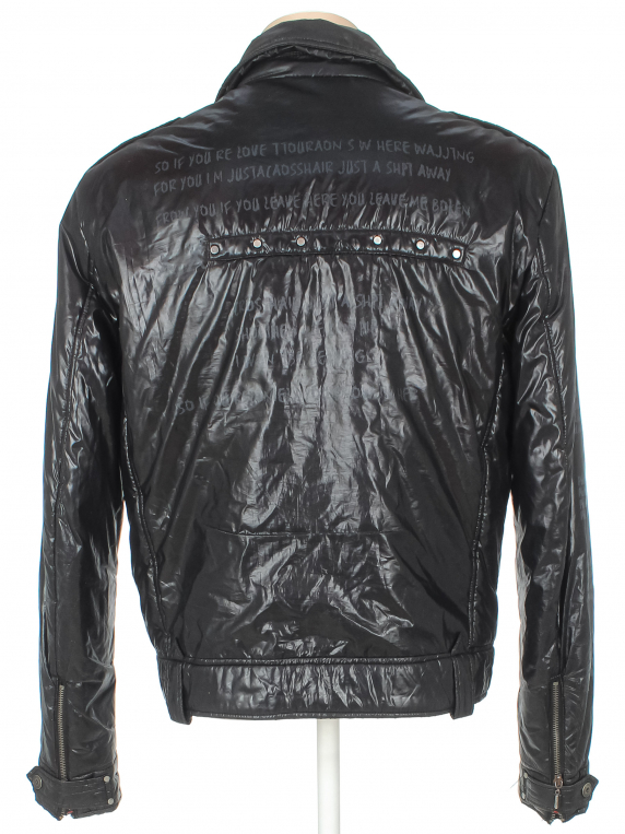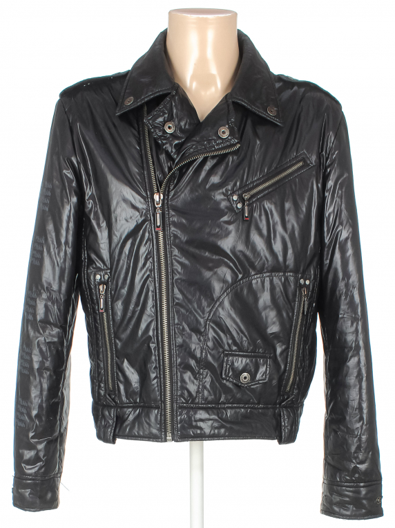 Наполнитель сбился. Сзади отсутствует декоративный элемент (дырка). Есть потертости на рукавах.