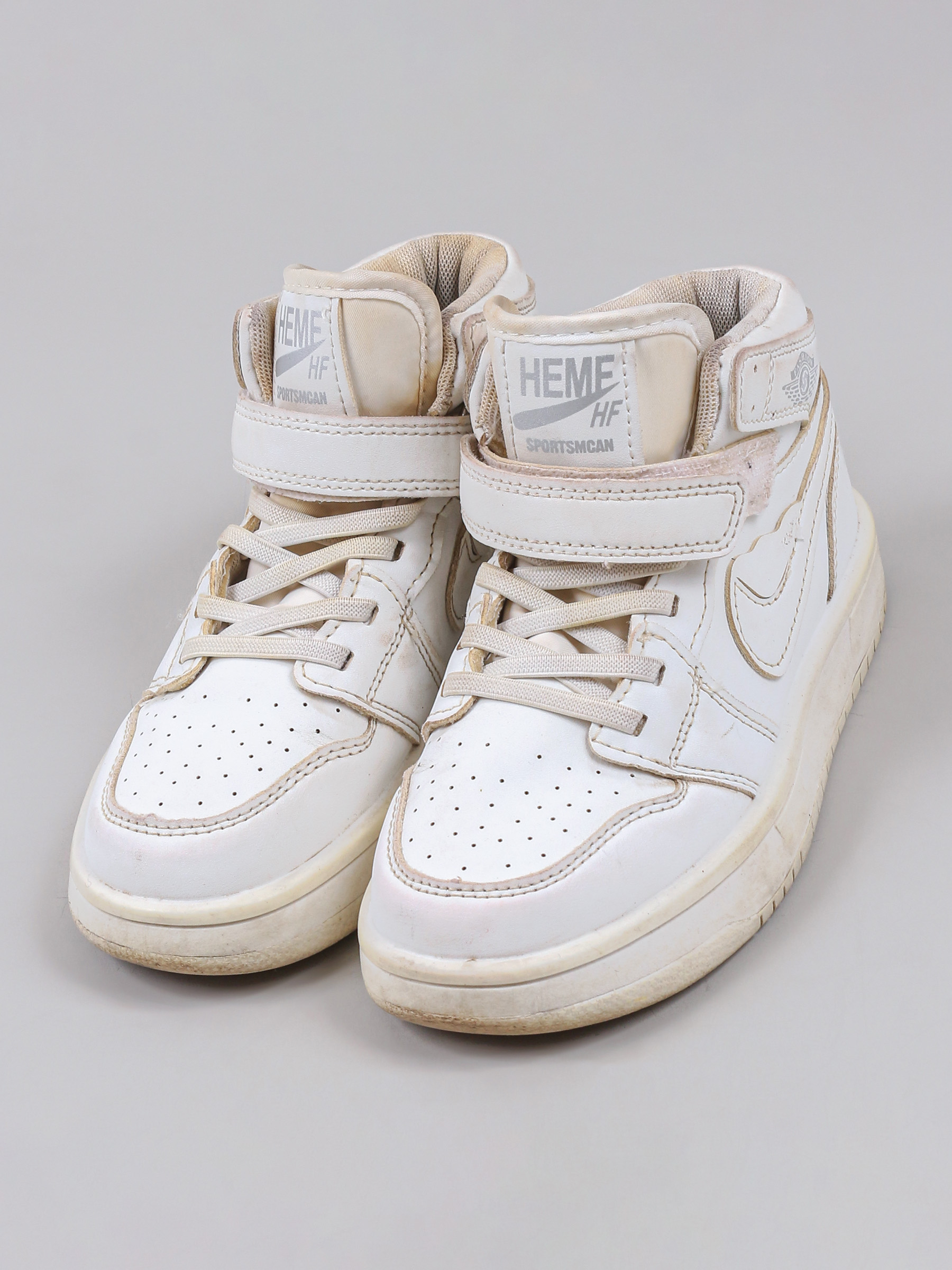 Есть загрязнения, заломы и царапины. Стельки отсутствуют.