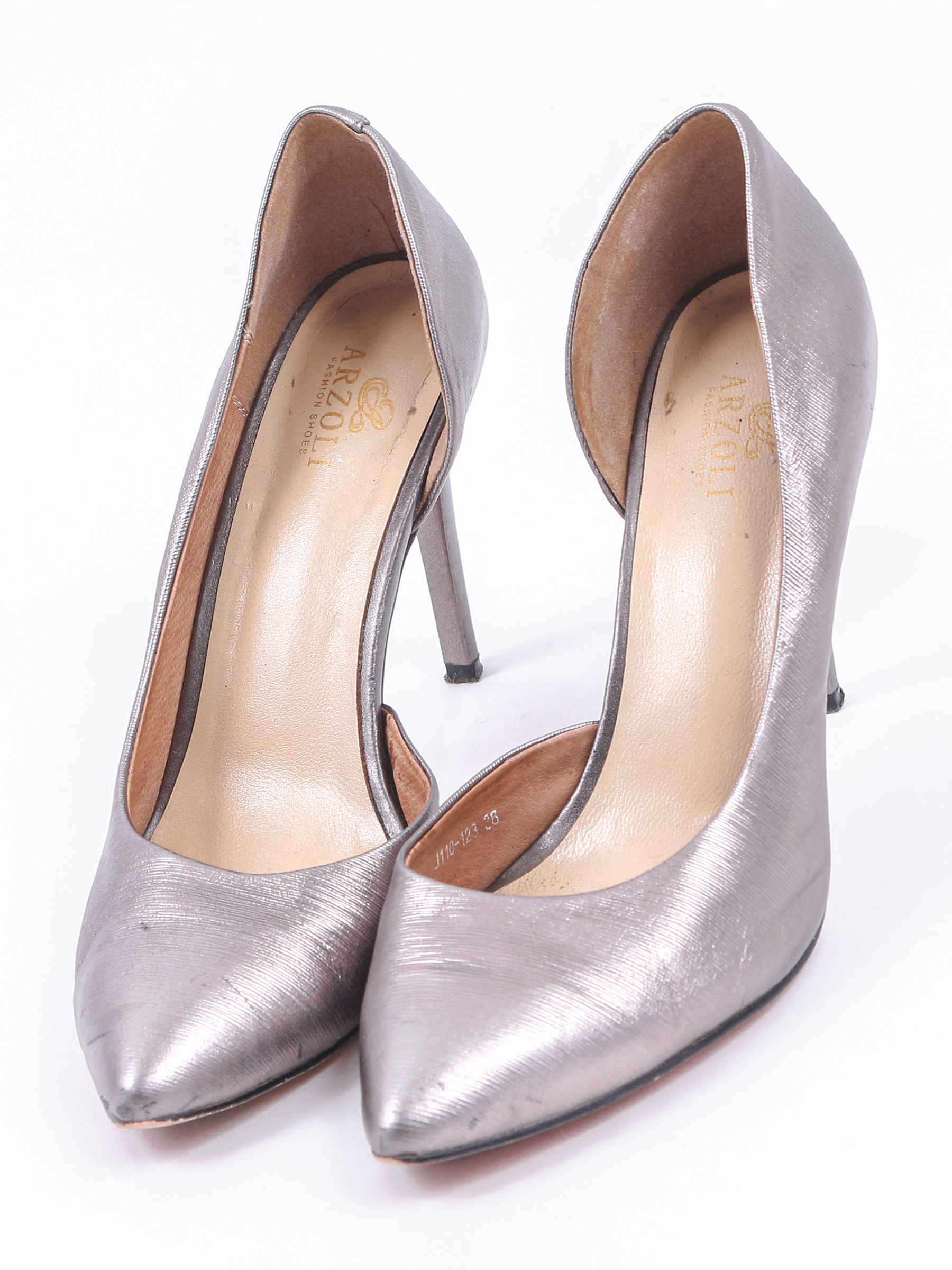 Есть небольшие загрязнения, заломы, царапины, износ подошвы.
