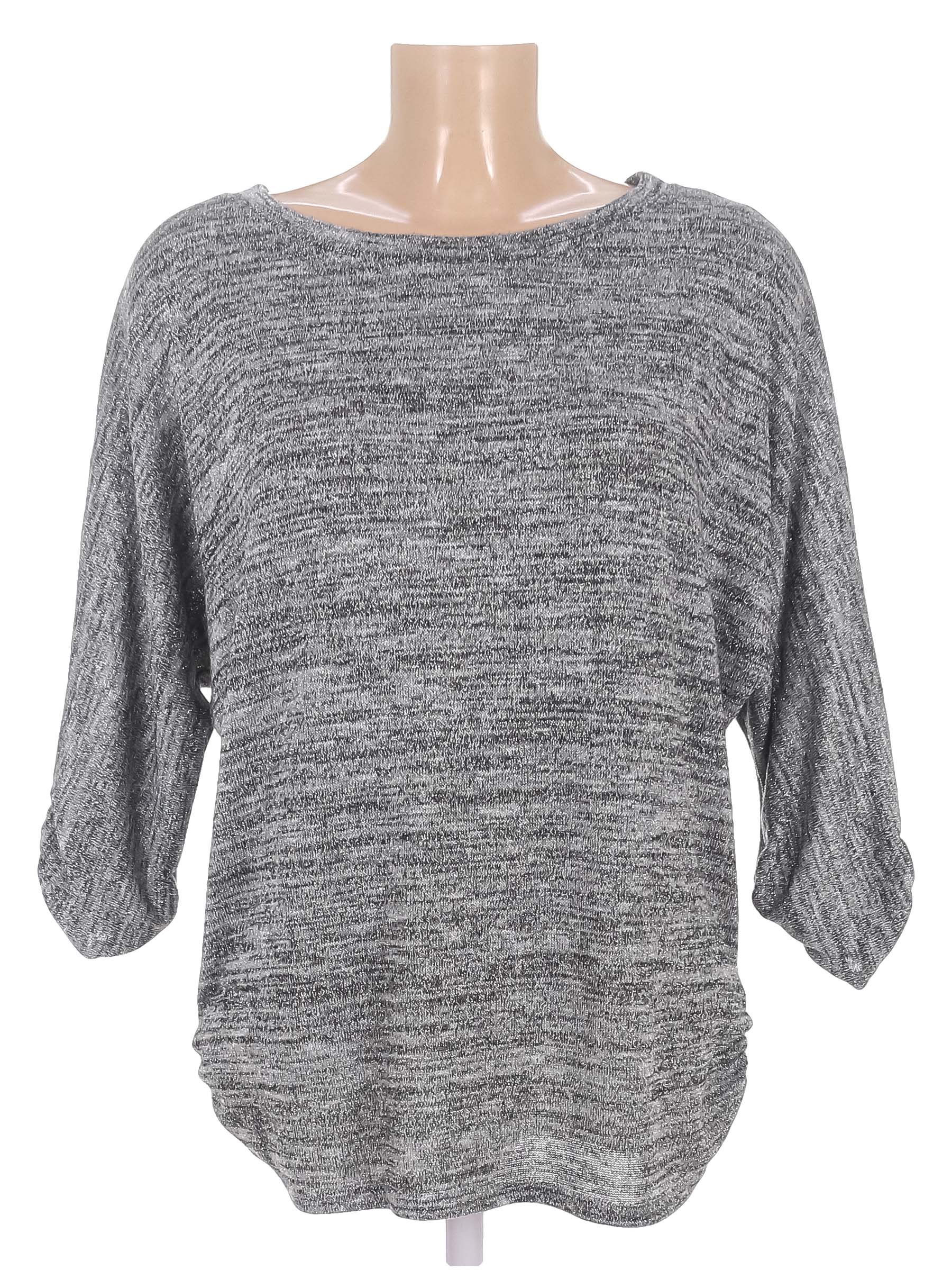 Маркировка EUR 42. Замер рукава указан от горловины. Есть катышки, несколько затяжек, ткань потускнела.