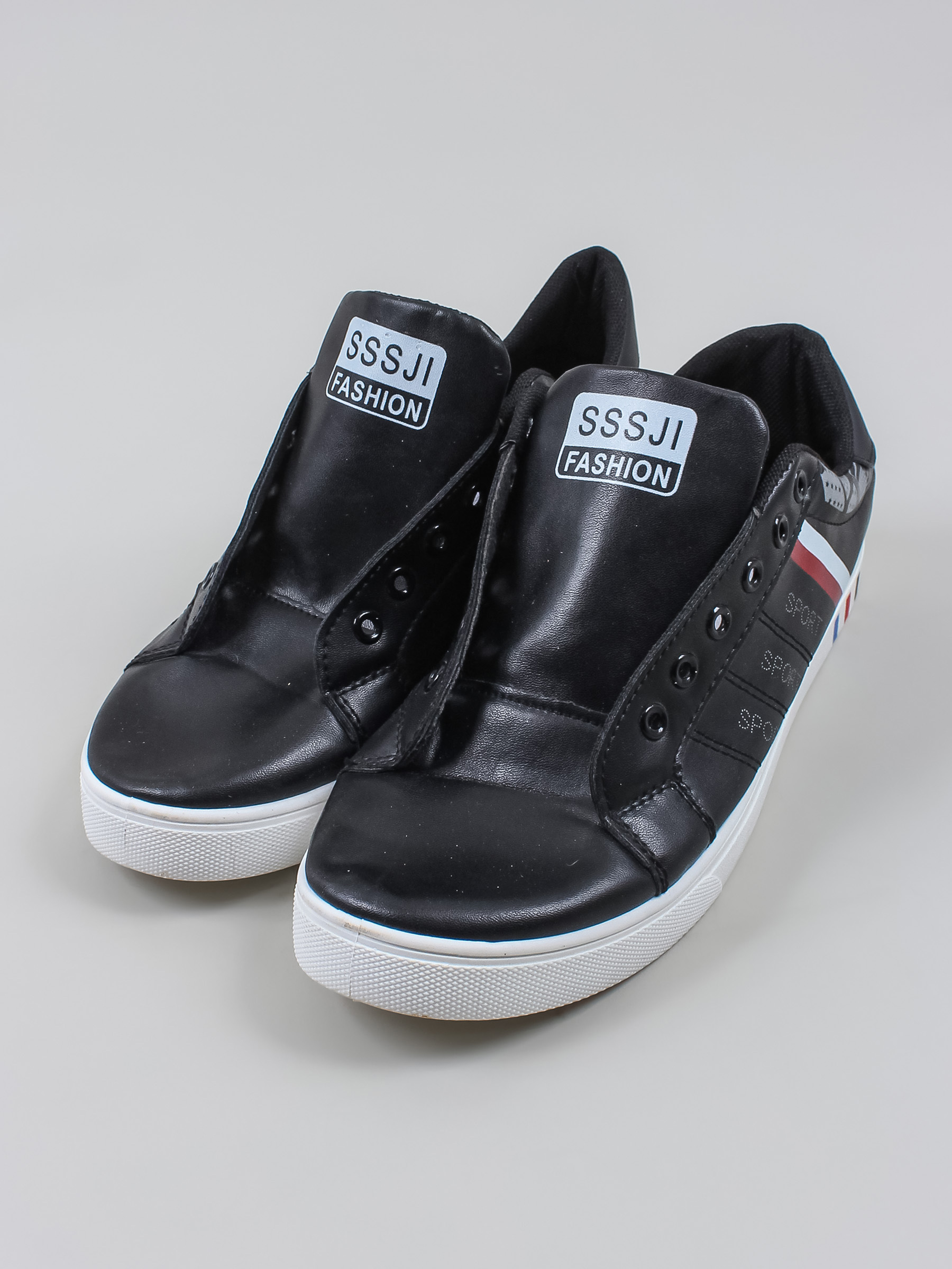 Маркировка на изделии 44. Размер указан на основании замеров. На стельке небольшое загрязнения. Отсутствуют шнурки. Есть заломы.