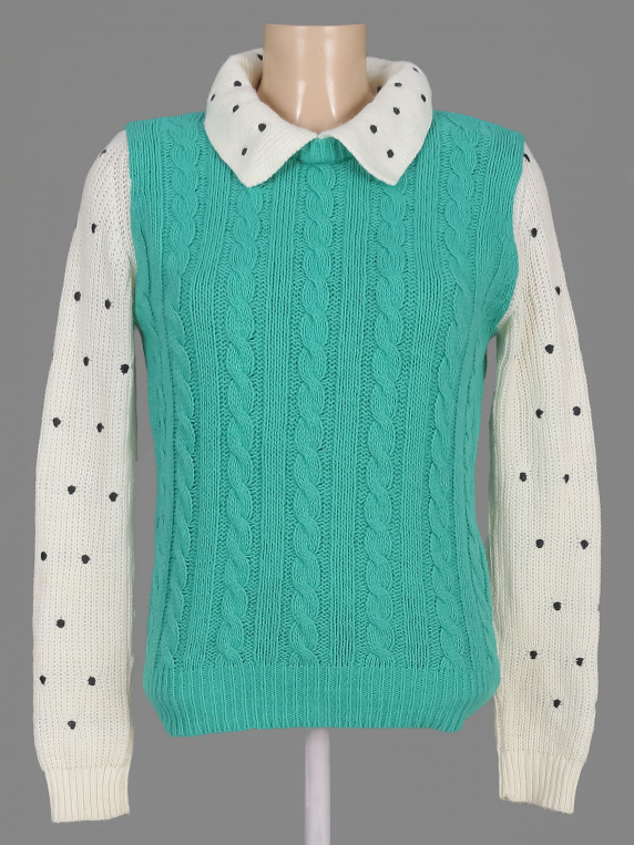 Маркировка на изделии отсутствует. Размер указан на основании замеров 44-46. Есть катышки, ткань местами немного вытянулась.