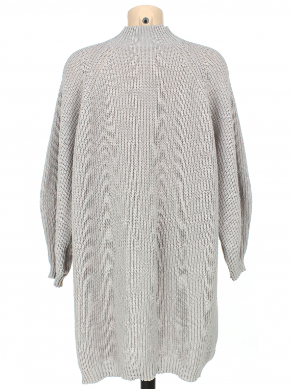 Ткань немного вытянулась, катышки. Замер рукава указан от горловины. По низу немного распускается вязка.