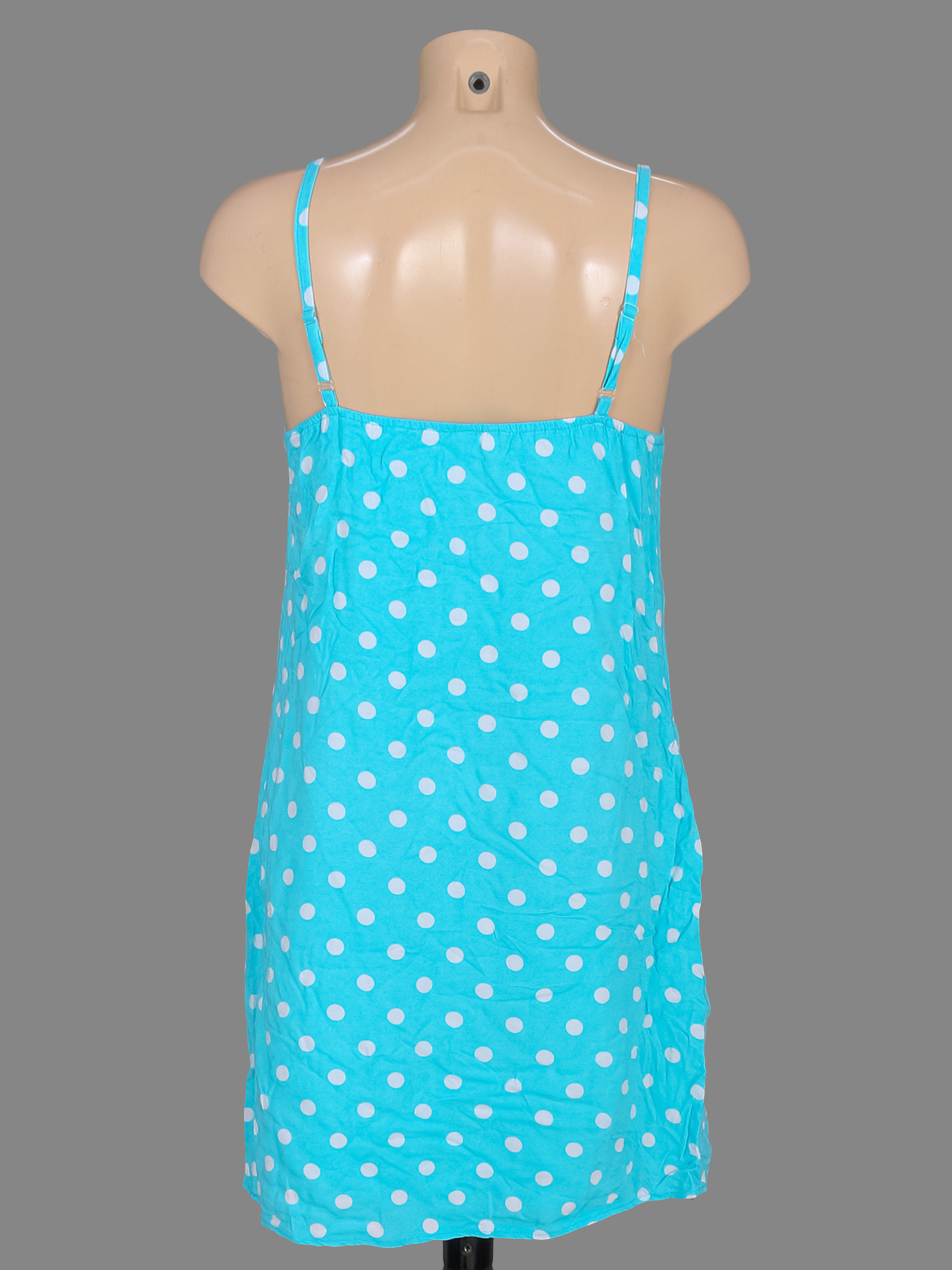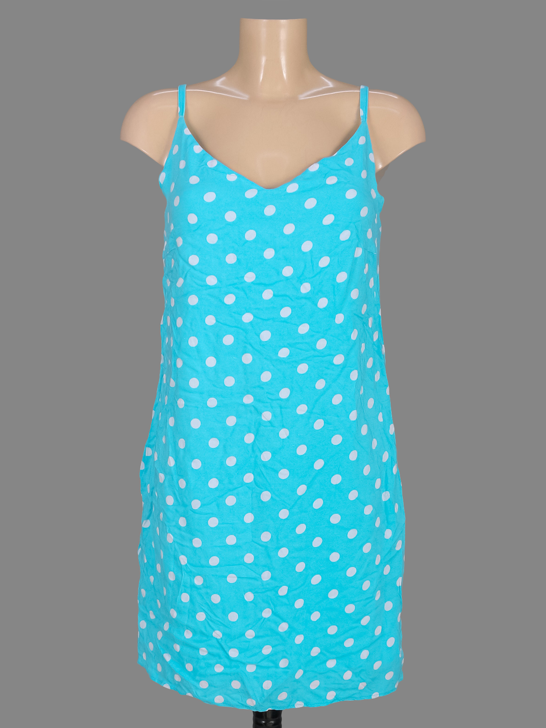 Маркировка на изделии отсутствует. Размер указан на основании замеров. Есть затяжки. Незначительно вытянута ткань по швам.