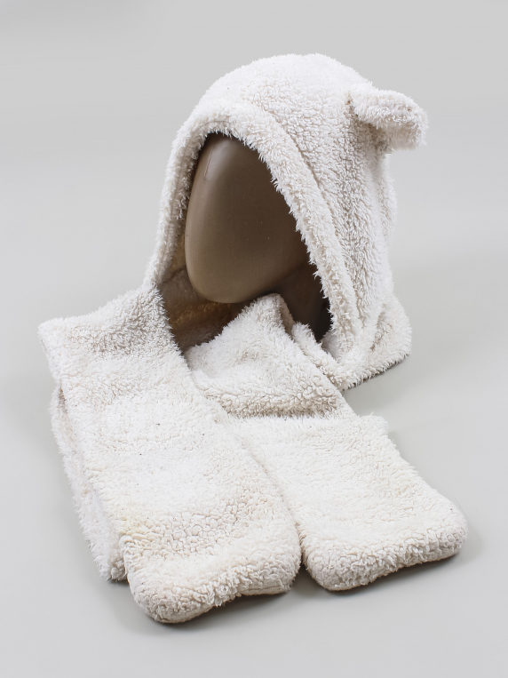 Есть загрязнения, скатался ворс, ткань потускнела.