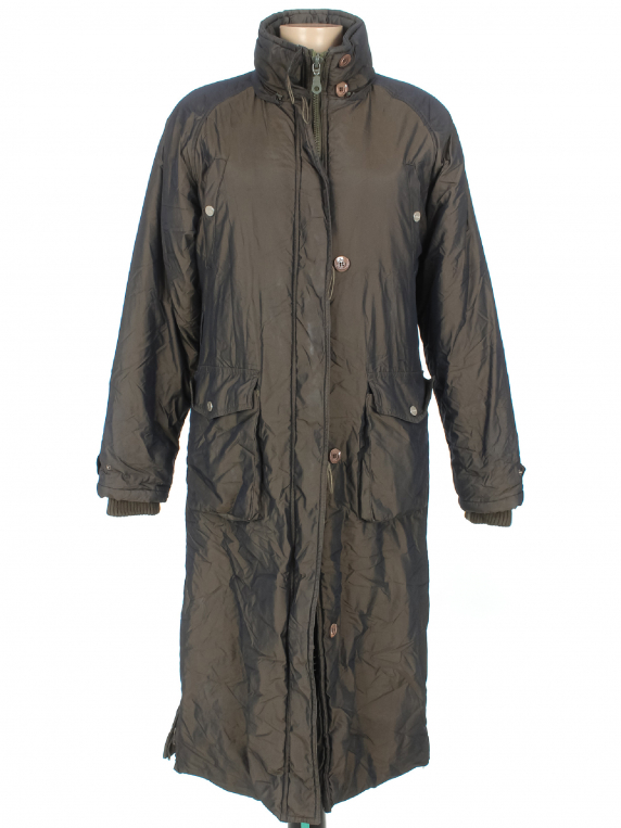 Растянуты петельки для пуговиц, есть небольшие загрязнения, по низу на подкладе есть дырочка. Маркировка 44. Замер рукава указан от горловины. Нет капюшона.