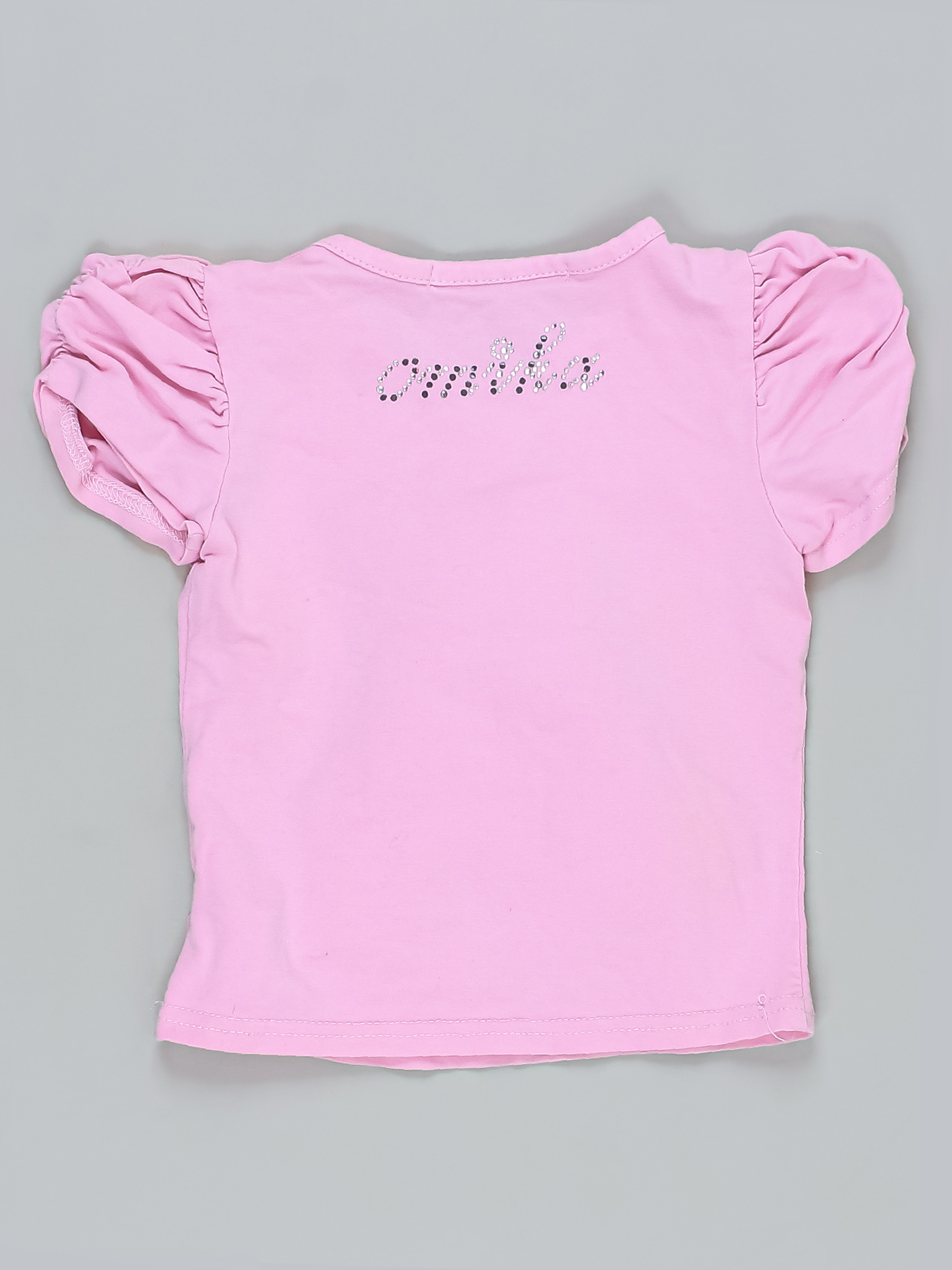 Есть небольшие загрязнения (возможно отстираются). Стразы частично отсутствуют. Декоративный элемент немного скатался.