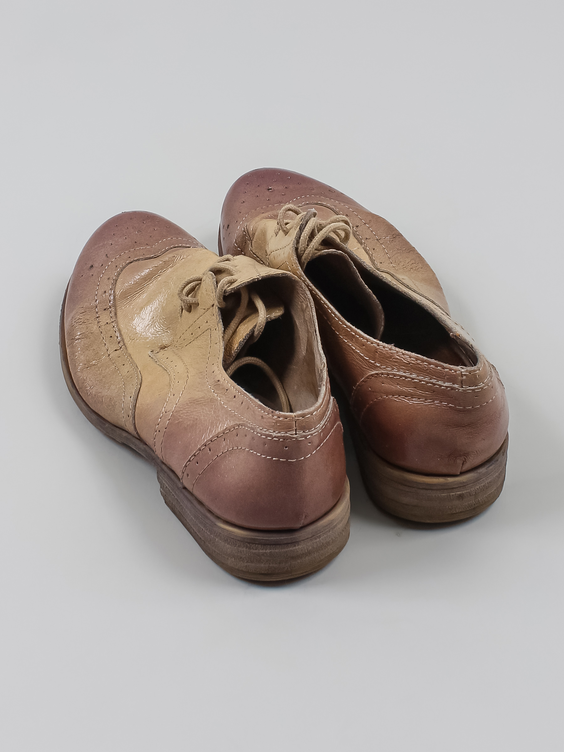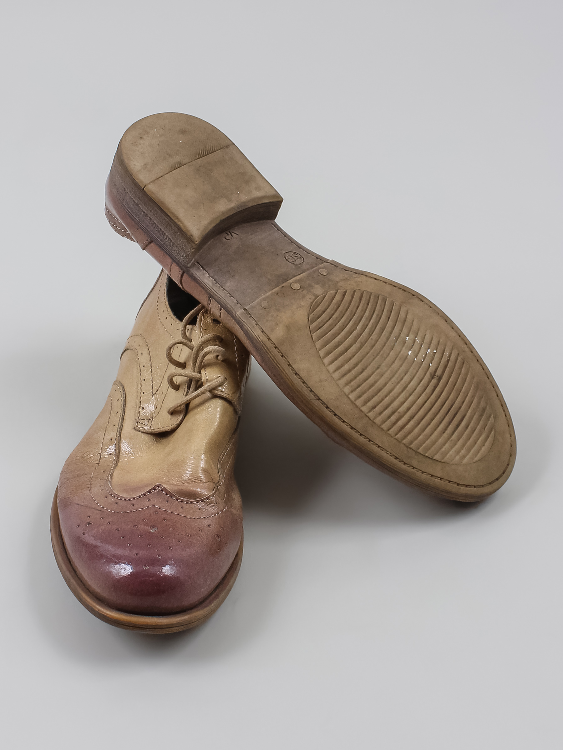 Есть загрязнения, заломы, трещины, небольшой износ подошвы. Длина по внутренней стельке указана с учетом носка.