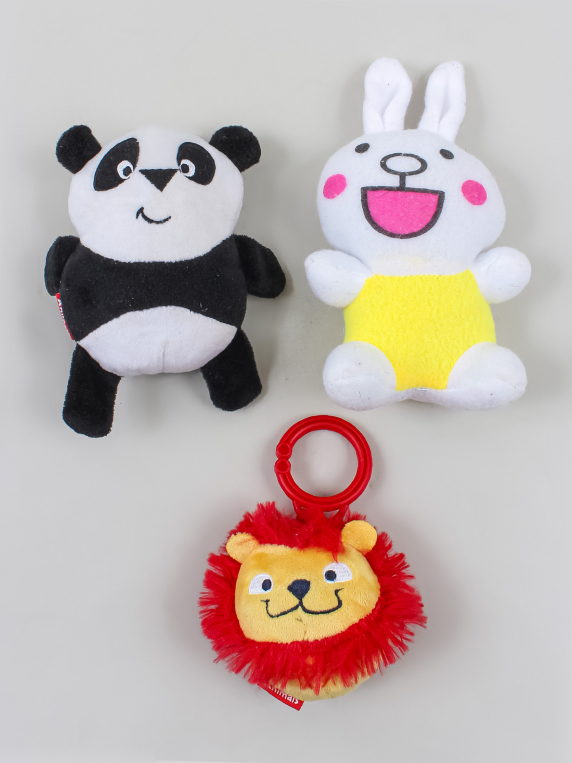 Есть небольшие загрязнения (возможно отстираются). Комплект 3 шт. Заяц и мишка по 14 см, лев - 13 см.